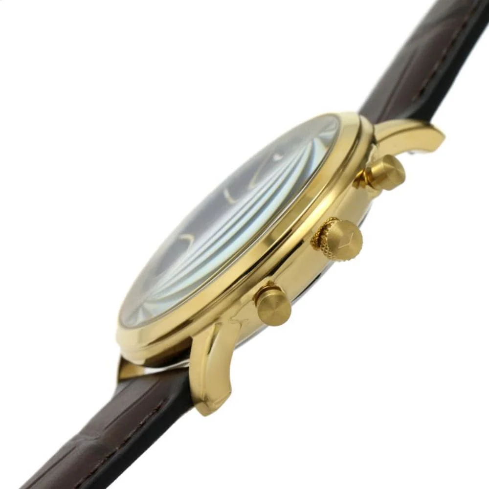 This 42mm Minimalist watch features a blue sunray dial, chronograph movement and brown croco eco leather strap.