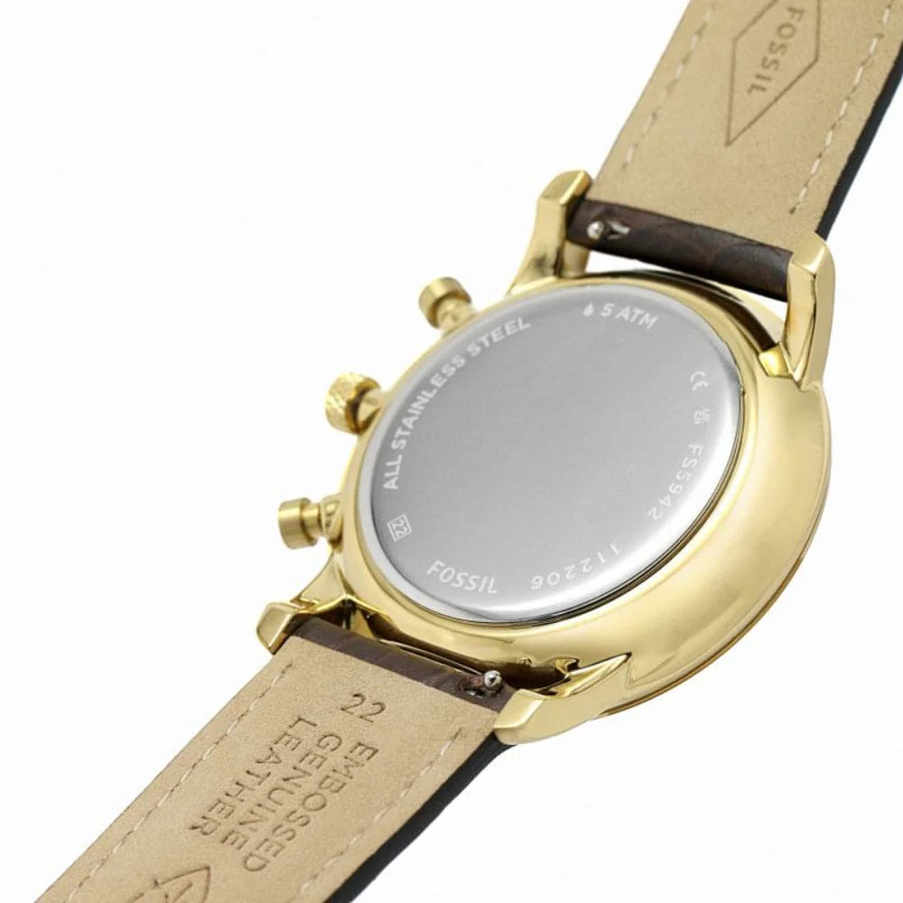 Fossil Minimalist Chronograph Brown Leather Strap Men Watch FS5942P