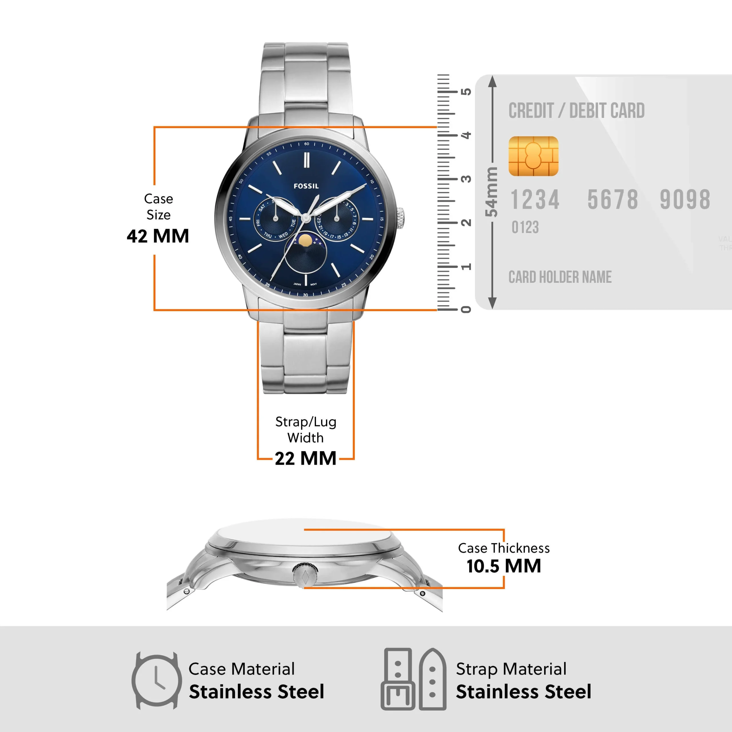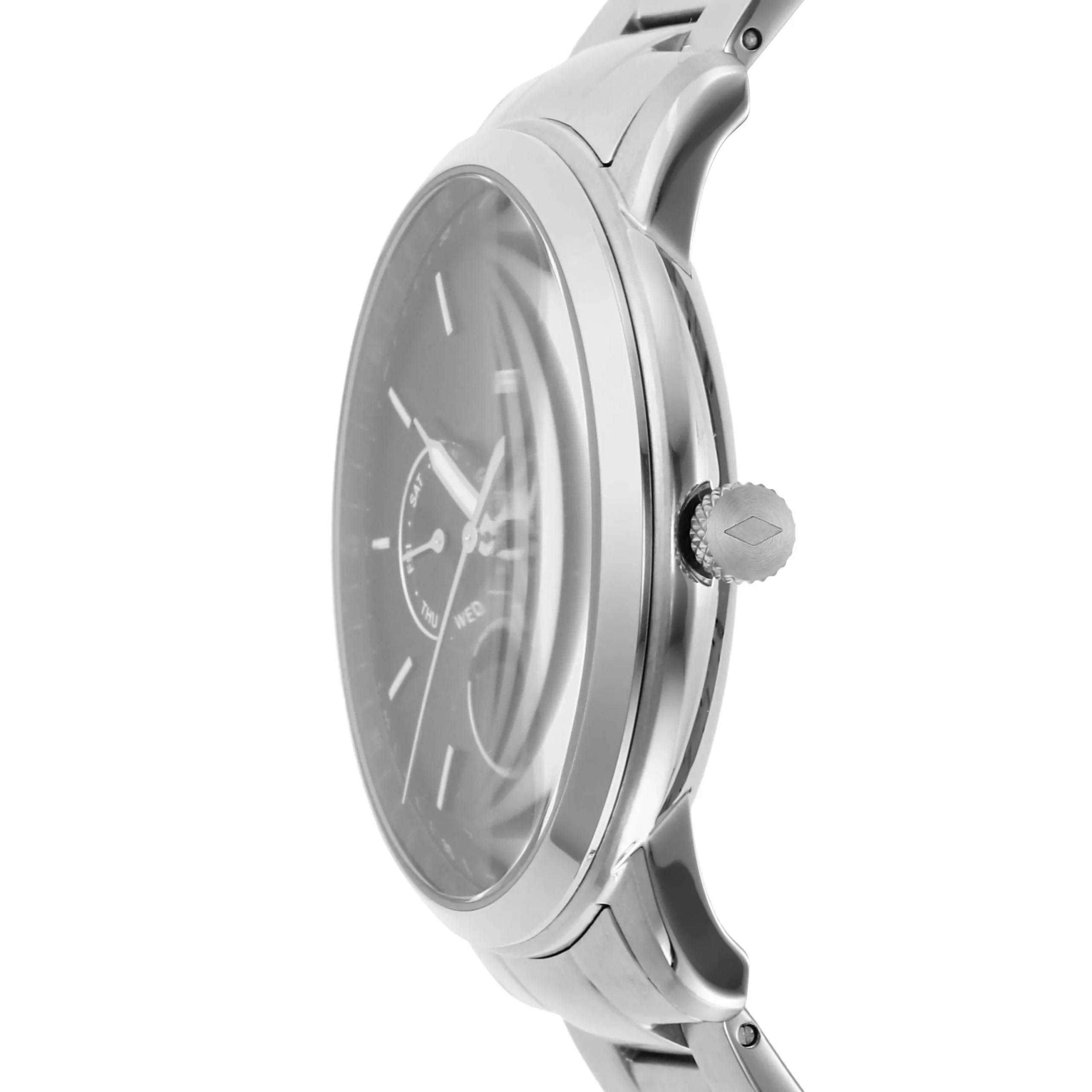 Crafted with refined precision, the Fossil Neutra Moonphase FS5907 men’s watch features a polished stainless steel case and bracelet paired with a rich blue dial that evokes timeless sophistication. Its moonphase complication adds a celestial touch, harmonizing beauty and function in one elegant timepiece. The 42mm case houses a reliable quartz movement protected by a mineral crystal glass, while the water resistance of up to 50 meters ensures everyday durability. Designed for those who appreciate classic design with modern nuances, this Fossil watch is a perfect expression of understated luxury and expert craftsmanship.