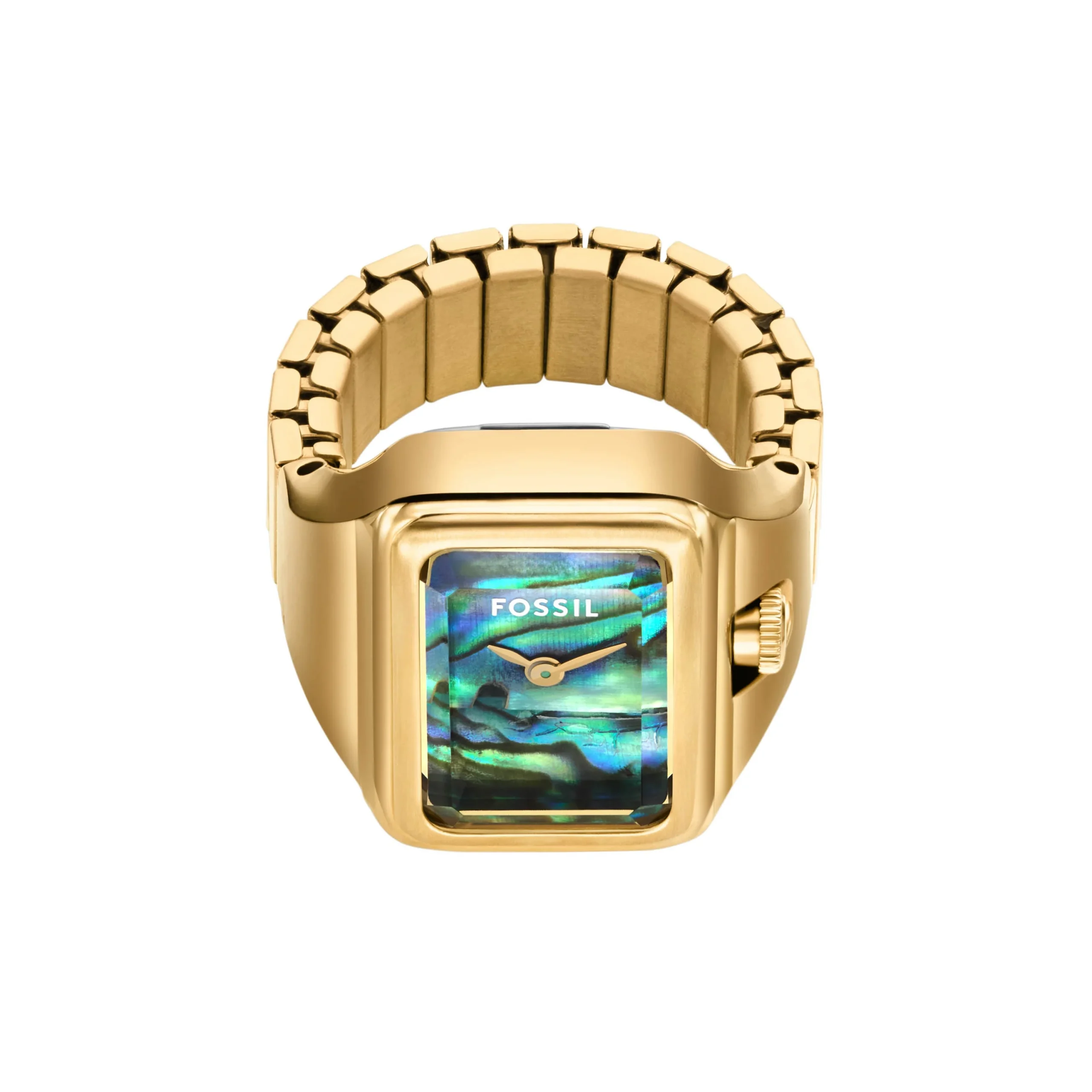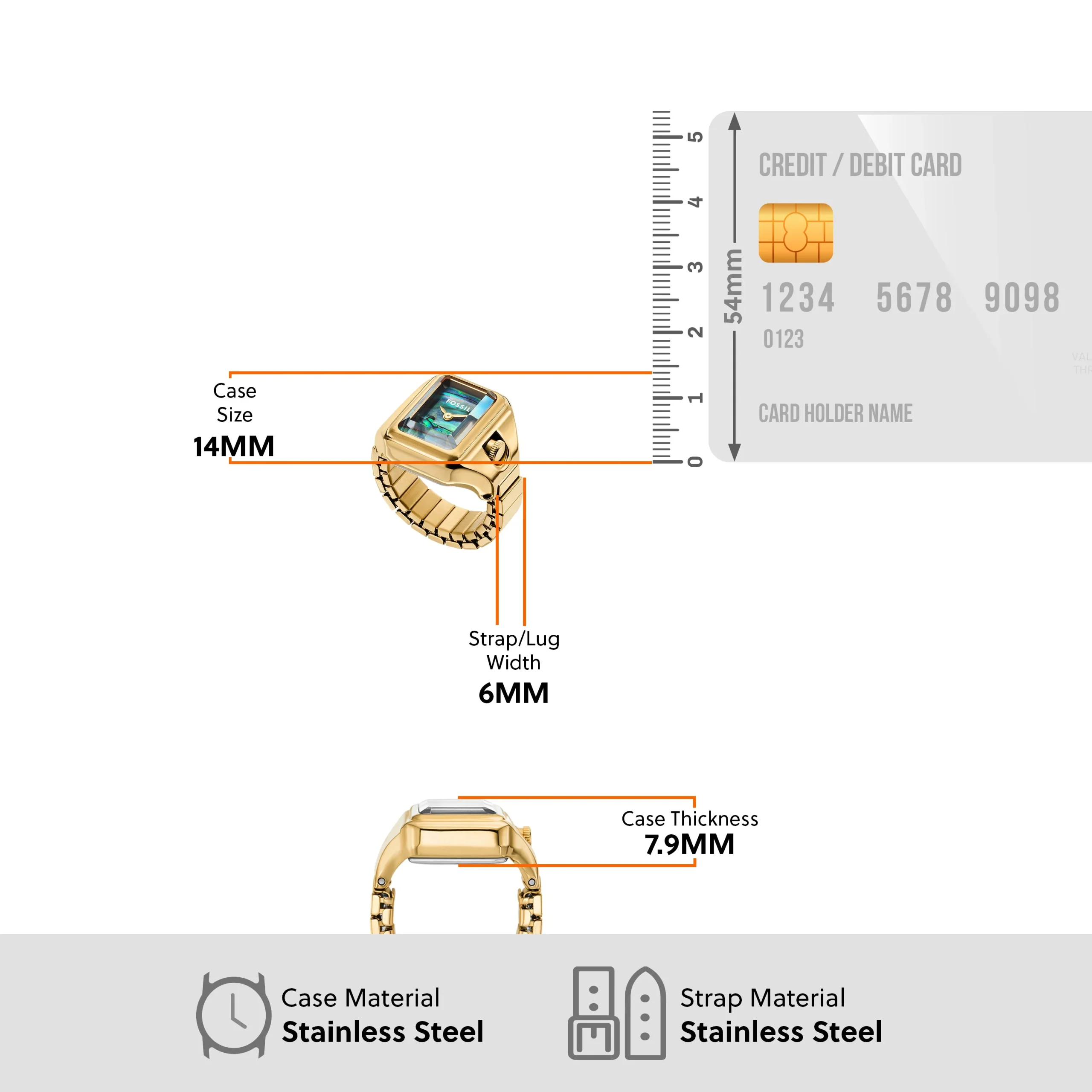 The Fossil Raquel Two-Hand Stainless Steel Ring Watch ES5411 is a refined expression of timeless elegance, blending the charm of vintage design with modern sophistication. Designed for those who appreciate subtle luxury, this watch ring features a sleek rectangular case crafted in radiant gold-tone stainless steel. Measuring approximately 1.8 cm by 2.5 cm, its slim profile rests gracefully on the wrist, offering a seamless balance of comfort and style. The integrated bracelet echoes the same polished gold tone, creating a cohesive, elegant silhouette that complements both everyday looks and formal ensembles.