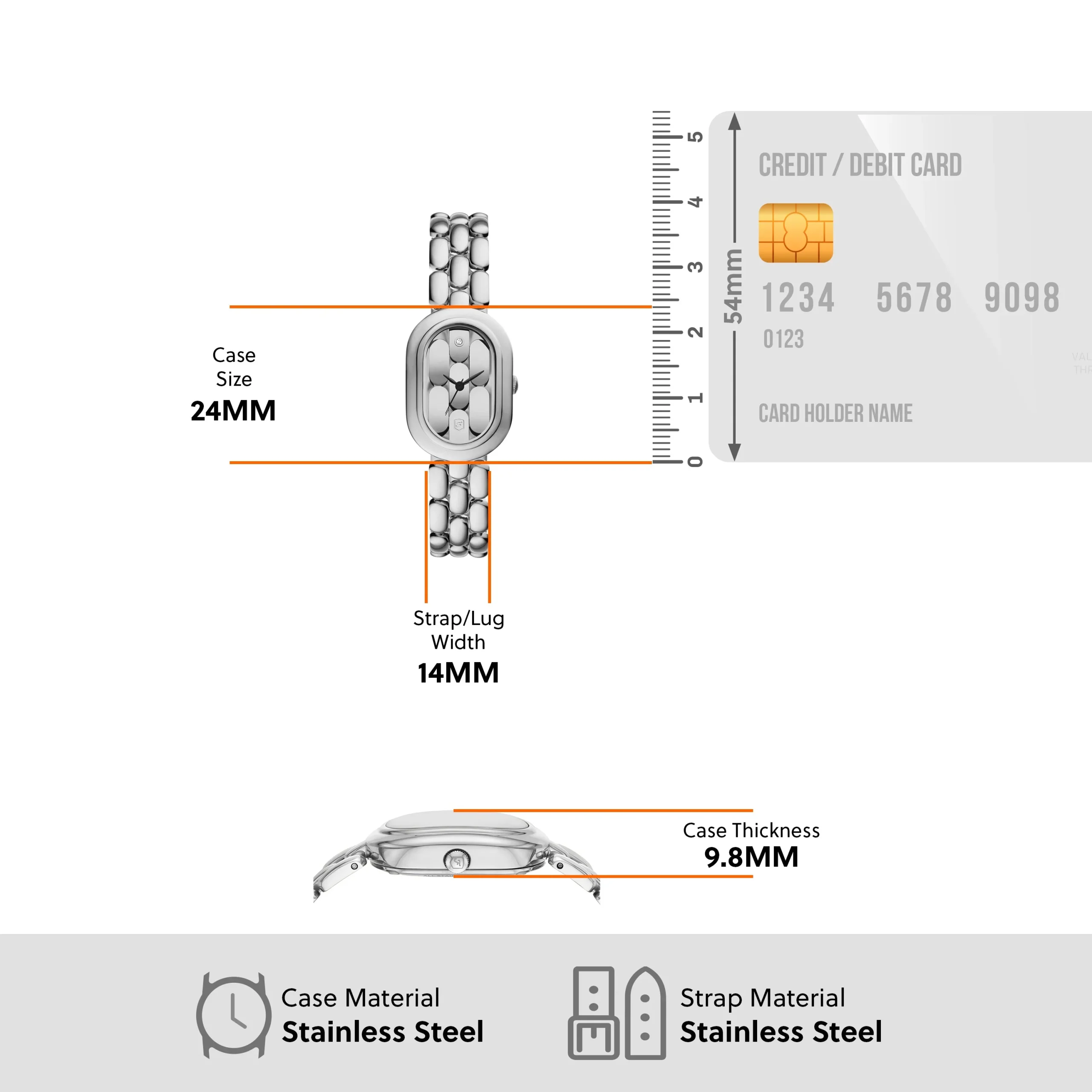 Refined and radiant, the Fossil Sloan Three-Hand Silver Dial Stainless Steel Watch ES5381 blends jewelry-inspired elegance with everyday practicality. Designed as the perfect women’s watch, it features a polished stainless steel bracelet that flows seamlessly into a uniquely oval 24mm case. The silver dial reveals a skeletonized design with hand-applied details, creating an illusion of interlocking links for a striking modern look. A single crystal at the 12-hour mark adds a graceful shimmer, while quartz movement ensures precision. Protected by mineral glass and water-resistant up to 50 meters, this timepiece offers both durability and sophistication, making it a standout in the watches category.