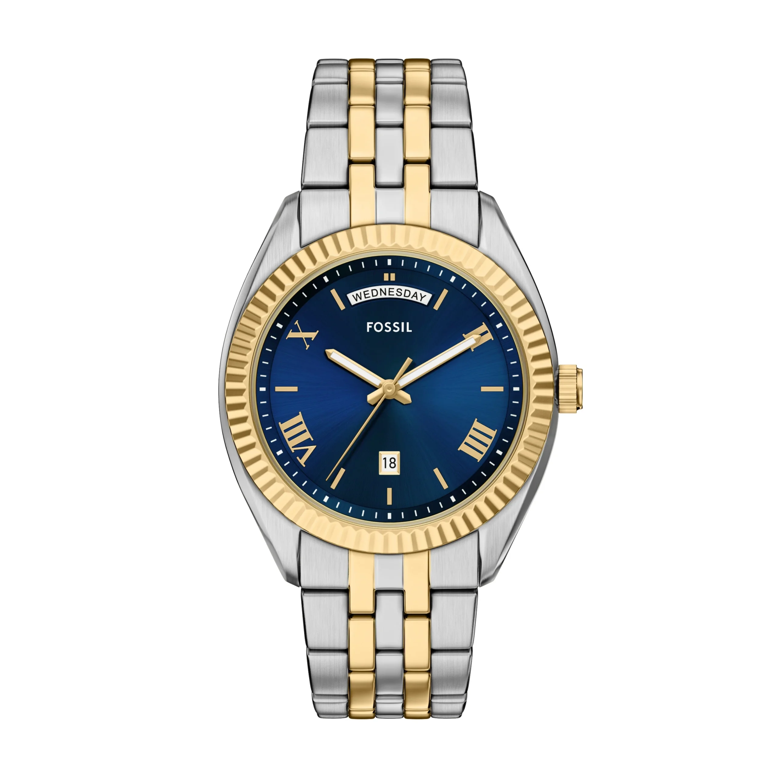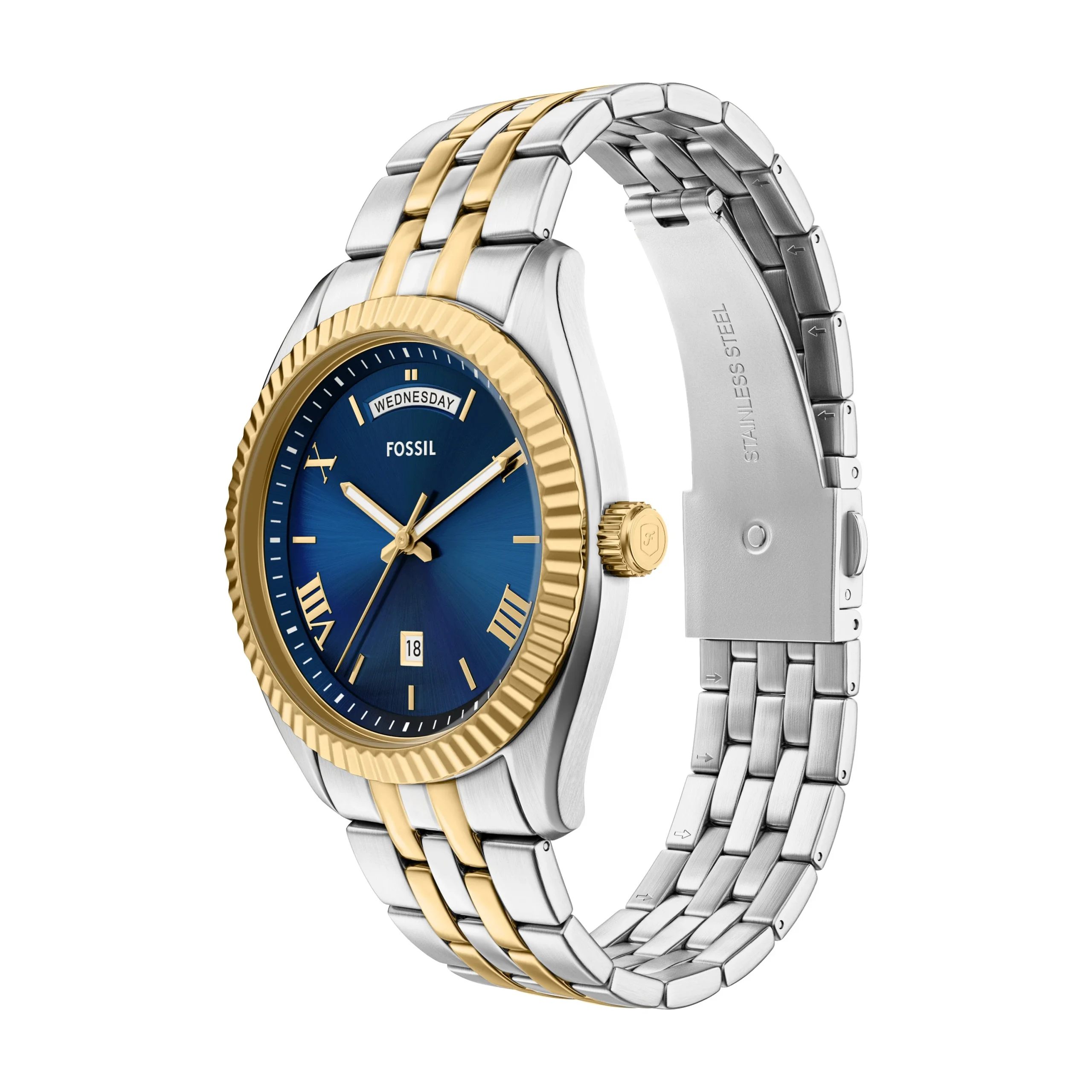 Fossil Three Hand Two Tone Stainless Steel Blue Dial Watch FS6141