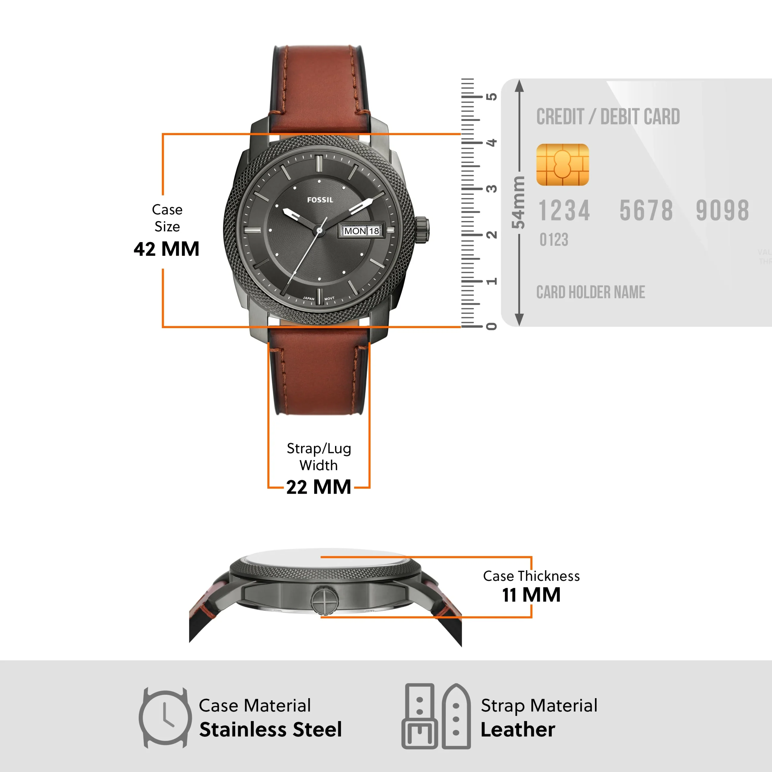 Crafted for understated confidence, the Fossil Machine FS5900 men’s watch blends modern quartz movement with classic detailing. The 42mm stainless steel case in a grey finish houses a minimalist grey dial, complemented by a precise three-hand display and a practical date window. Its rich brown leather strap offers a refined contrast, delivering both comfort and timeless appeal. Designed with a mineral crystal lens and water resistance up to 50 meters, this piece offers everyday durability without compromising on style. Ideal for any setting, from boardroom to weekend wear, this watch defines effortless sophistication in the watches category.