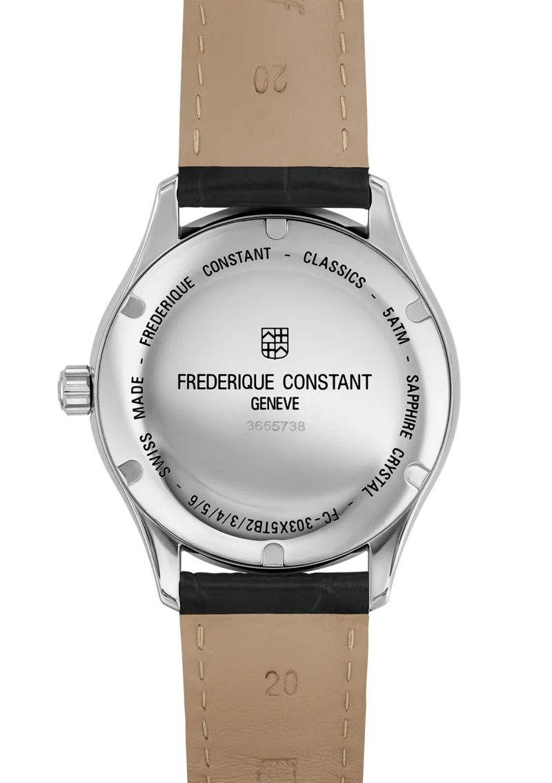 FC-303 caliber, Automatic movement. 38-hour power reserve, 26 jewels, 28’800 alt/h