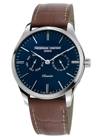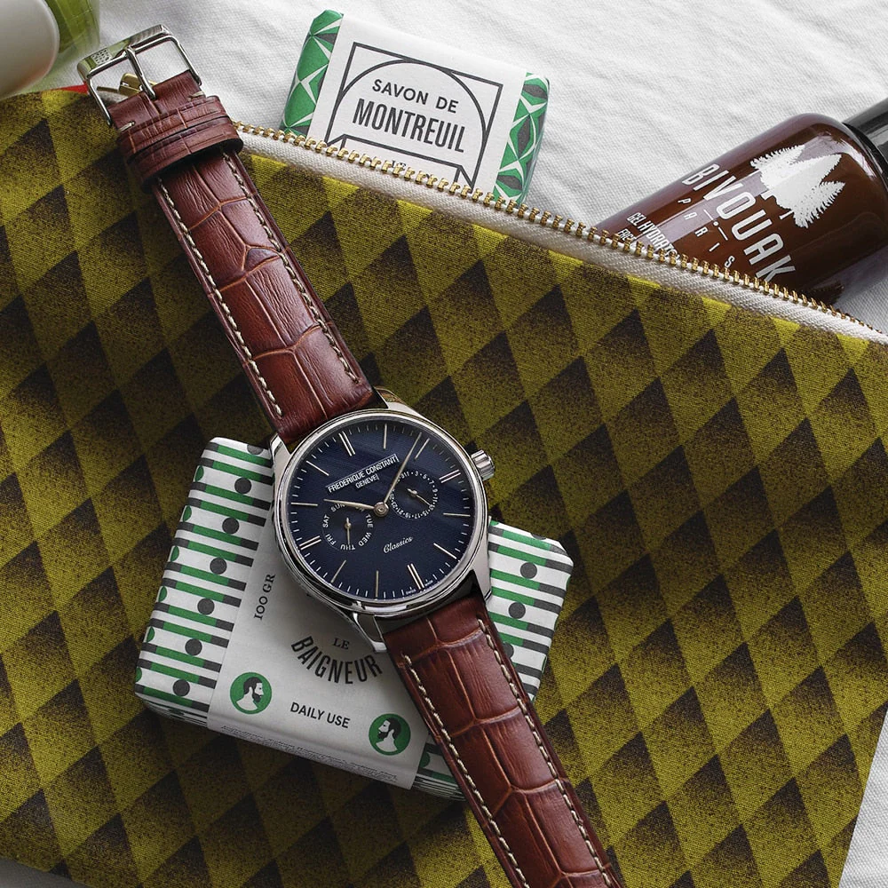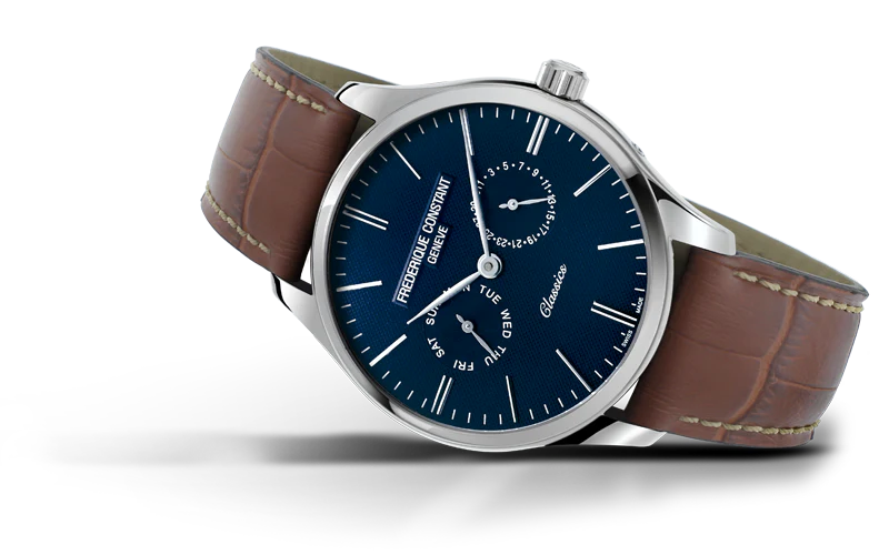 Blue dial with Clou de Paris decoration with hand-applied silver-colored indexes. Hand-polished silver-colored hands.