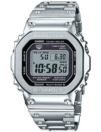 The Full Metal 5000 is a brand new, specially crafted all-metal timepiece. Inspired by the first G-SHOCK model, DW5000C, this upgraded original boasts a modern, lustrous, colorway while maintaining a vintage aesthetic. The watch also incorporates one of the first and most iconic G-SHOCK case designs, featuring a vintage, square shape case & bezel with a brick pattern on the face and a gorgeous Silver color accent. The GMWB5000GD-1 incorporates a super illuminator LED light and solar battery – rendering it capable of self-charging, as well as a special STN LCD. Two-way time sync is made possible via Bluetooth Connectivity and the G-SHOCK app, as well as G-SHOCK’s Multi-Band 6 Atomic Timekeeping technology, which provides accurate timekeeping virtually anywhere via radio signals from up to six different transmitters worldwide.