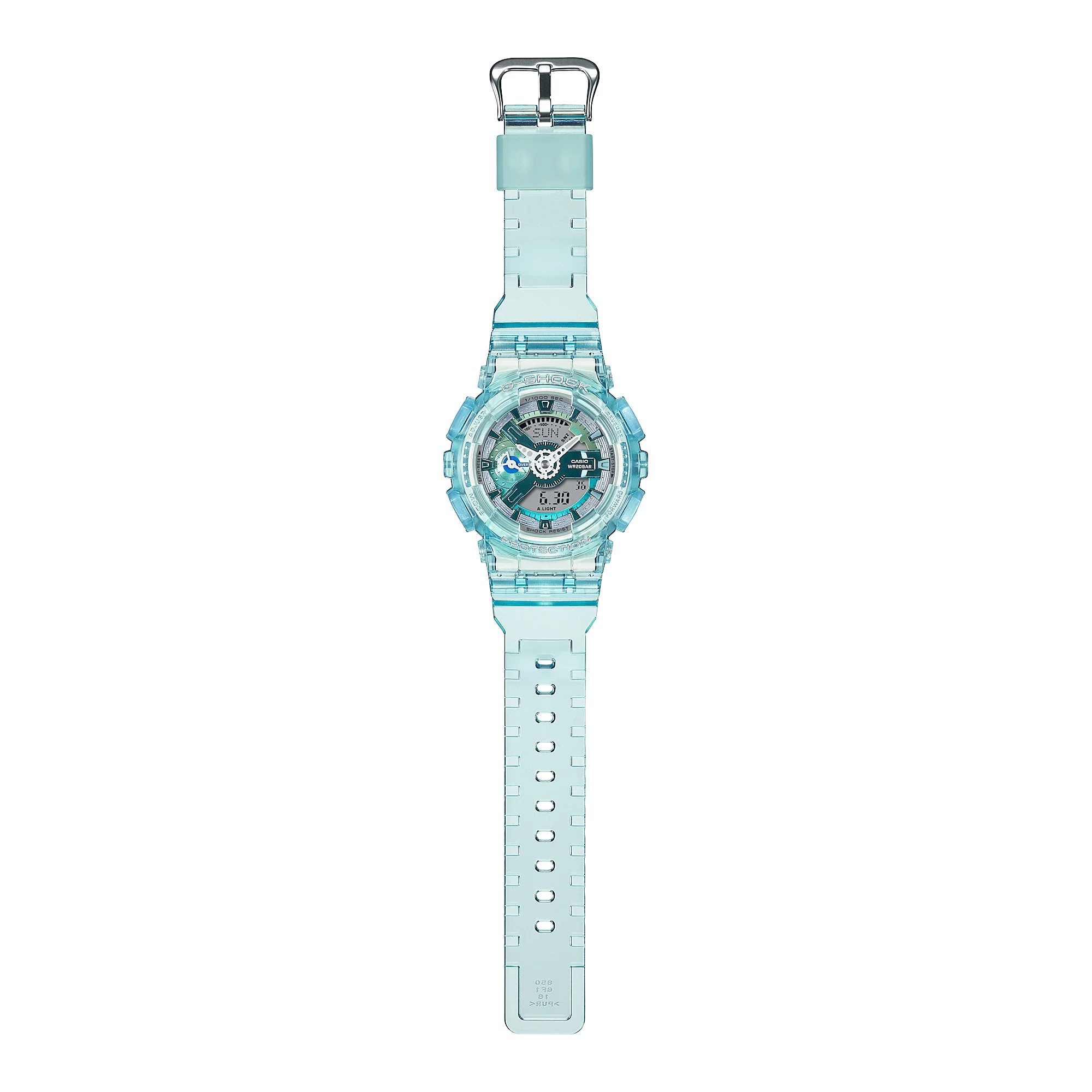 Step into a realm of adventure with the G-Shock Analog Digital Mid DUO Virtual World Resin Band Watch GMAS110VW-2A, a stunning fusion of style and functionality. Crafted from durable resin, this women’s watch features a striking blue dial with a unique multilayered design, enhanced by a vapor deposition finish for a futuristic aesthetic. With a slim case size of 49 mm, it is tailored for comfort, ensuring a perfect fit on slimmer wrists. Built to withstand the rigors of everyday life, it offers 200 meters of water resistance and is shock and magnetic resistant. This timepiece not only tells time but also embodies a spirit of exploration, making it an essential accessory for those seeking both elegance and resilience in the world of watches.