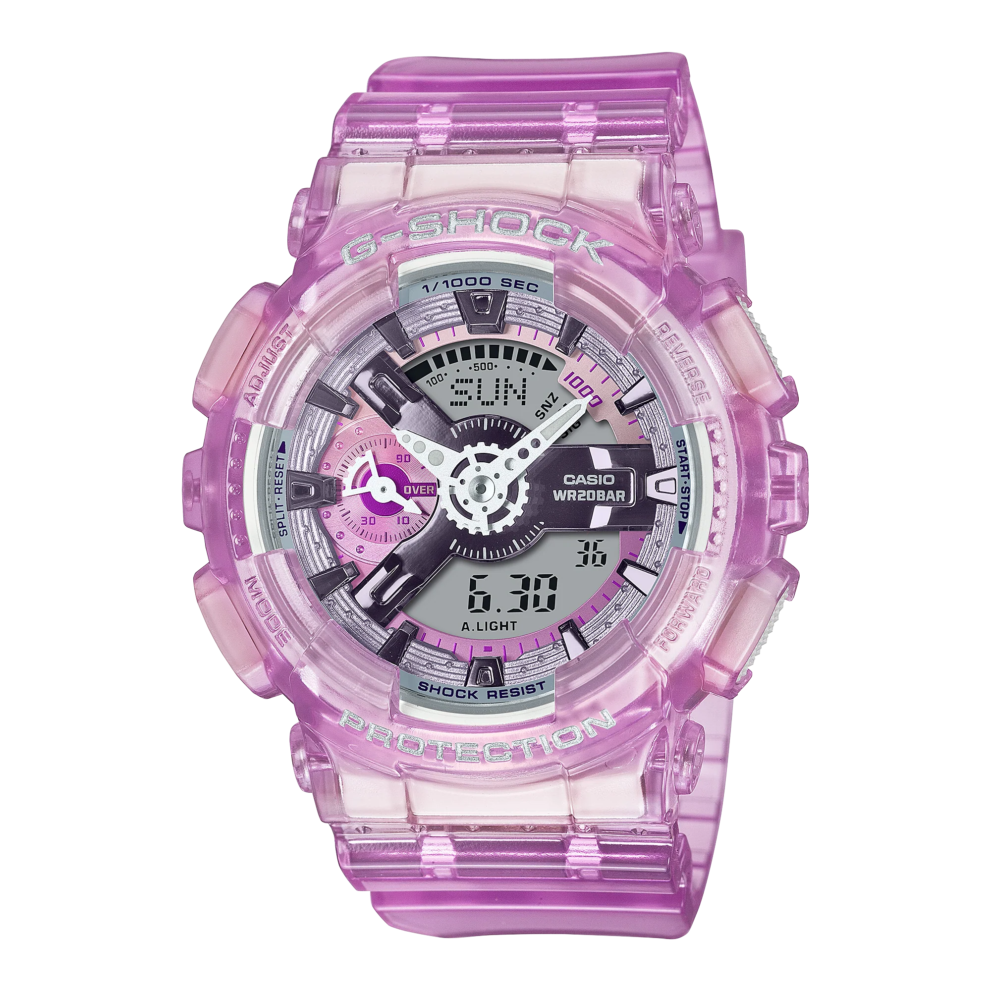 Step into the future with a timepiece that is as unique as it is innovative. The G-Shock Analog Digital Mid DUO Virtual World Resin Band Watch GMAS110VW-4A is more than just a watch; it’s your passport to the virtual worlds of the near-future. Crafted to captivate and inspire, this watch is a manifestation of advanced technology and stylish design.