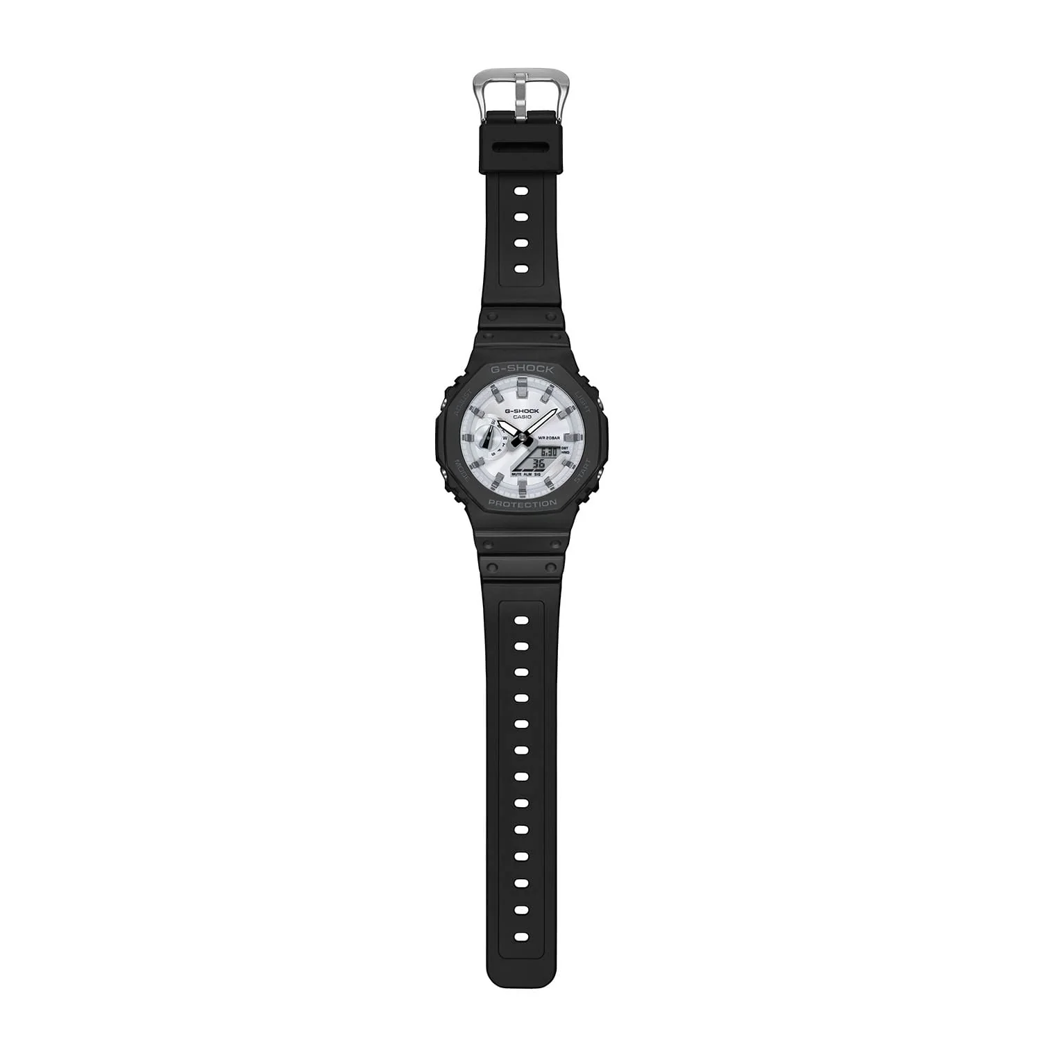 Go bold and confident with a strikingly straightforward G-SHOCK in high-contrast black and white.