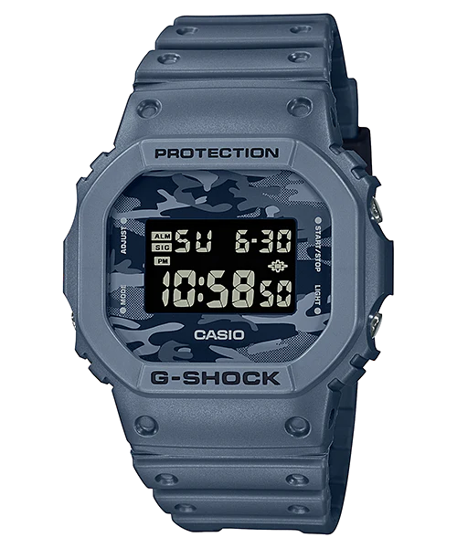 A watch that goes with you all the way from the wild outdoors to the inner city, in just-right colours that fit in anywhere. Featuring an original G-SHOCK camouflage motif on the dial.