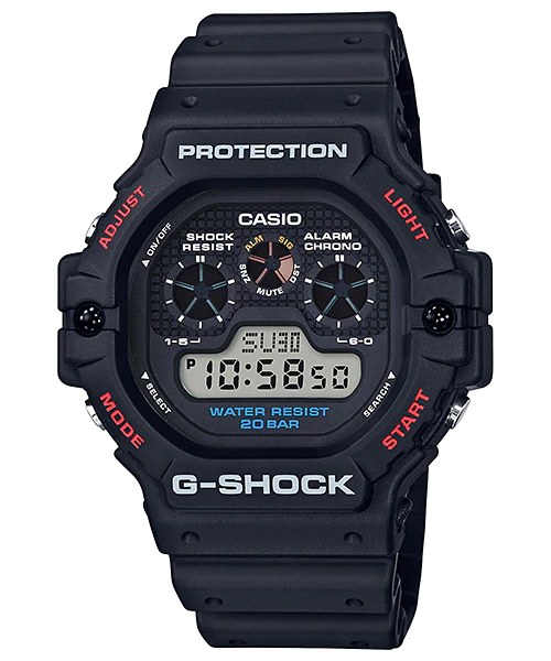 Reviving a cult classic with modern updates, the G Shock Digital 5900 Style DW5900-1D is a bold men’s watch that celebrates G-SHOCK’s heritage with rugged appeal and advanced functionality. Featuring a black resin band and shock-resistant construction, it boasts a 51.4mm case and mineral glass for long-lasting durability. This casual timepiece includes essential features like world time, 12/24-hour format, stopwatch, countdown timer, alarm, and a full auto-calendar. The three-eye digital display and EL backlight enhance readability in any condition, while 200-meter water resistance adds performance reliability. With its retro graphics and contemporary build, this watch blends nostalgic design with everyday practicality for the modern wearer.