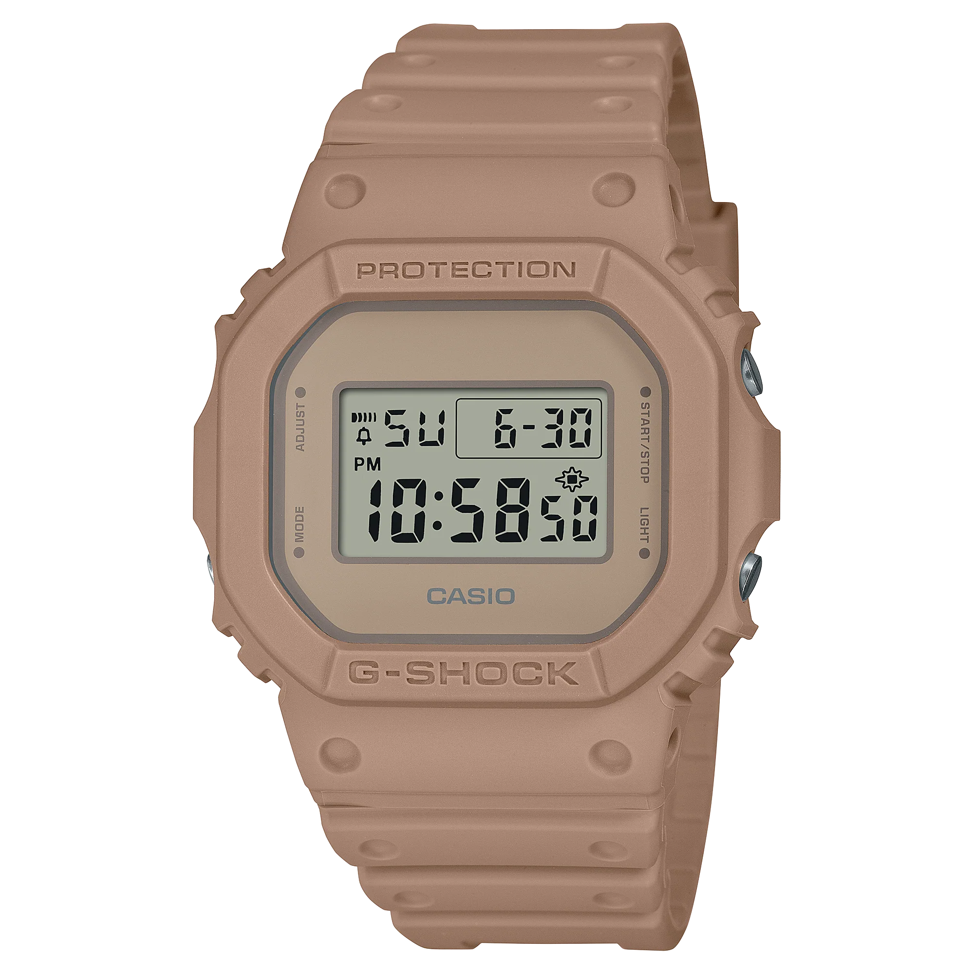 Embrace the rugged elegance of the G-Shock Digital Brown Resin Band Watch DW5600NC-5D. Inspired by the captivating beauty of the great outdoors, this timepiece incorporates earthy tones, reminiscent of mountains, grasslands, sand, and stone.