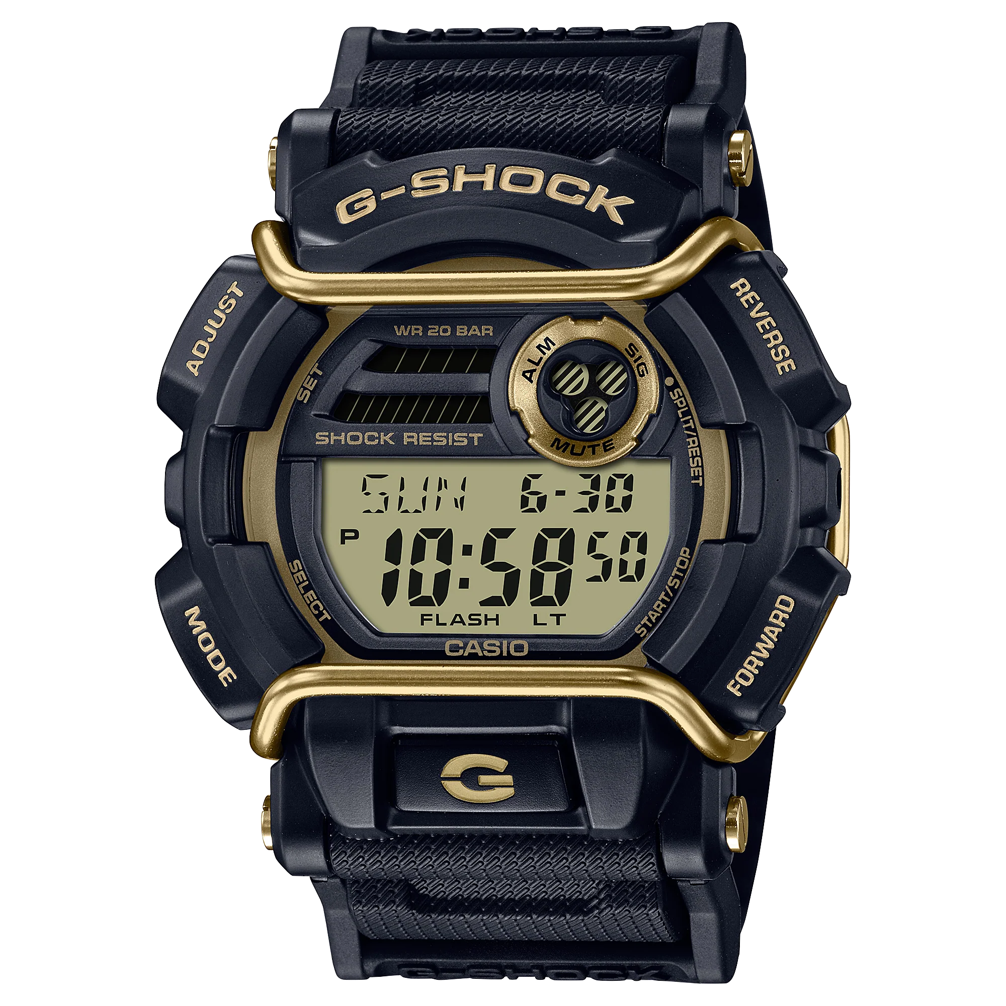 The classic black base of this G-Shock watch is beautifully accentuated with gold highlights, creating a fashion-forward accessory that’s perfect for HIP-HOP artists, B-BOY enthusiasts, or anyone who appreciates a touch of boldness in their wardrobe. The eye-catching black and gold color scheme is utilized thoughtfully across the case, band, and face of the watch, resulting in a design that is as cool as it is stylish.
