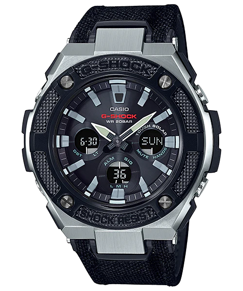 The bezels of the GST-S330AC models have either a black or gray ion plated (IP) finish which further enhances the bezel texture. The band of the GST-S330AC models combines highly wear resistant tough leather with CORDURA® fabric, which is stronger than nylon and often used for heavy-duty work wear.