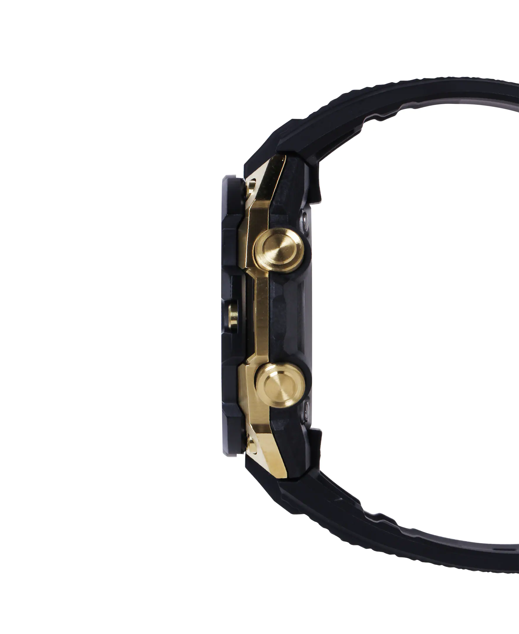 Tough construction meets stylish design with metal bezel ion-plated in gold set against a black base. This sophisticated fashion statement with a luxury feel and cool look takes you where you want to go.