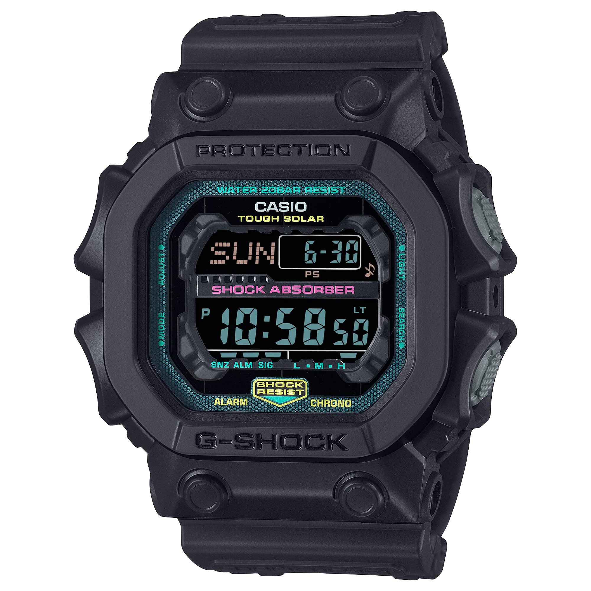The G-Shock GX-56 Series Digital Black Resin Band Watch GX56MF-1D offers durable, shock-resistant design for those on-the-go. With a sleek black resin finish, this watch is perfect for everyday wear and features digital technology for easy timekeeping. Stay on schedule and stylish with this reliable timepiece.