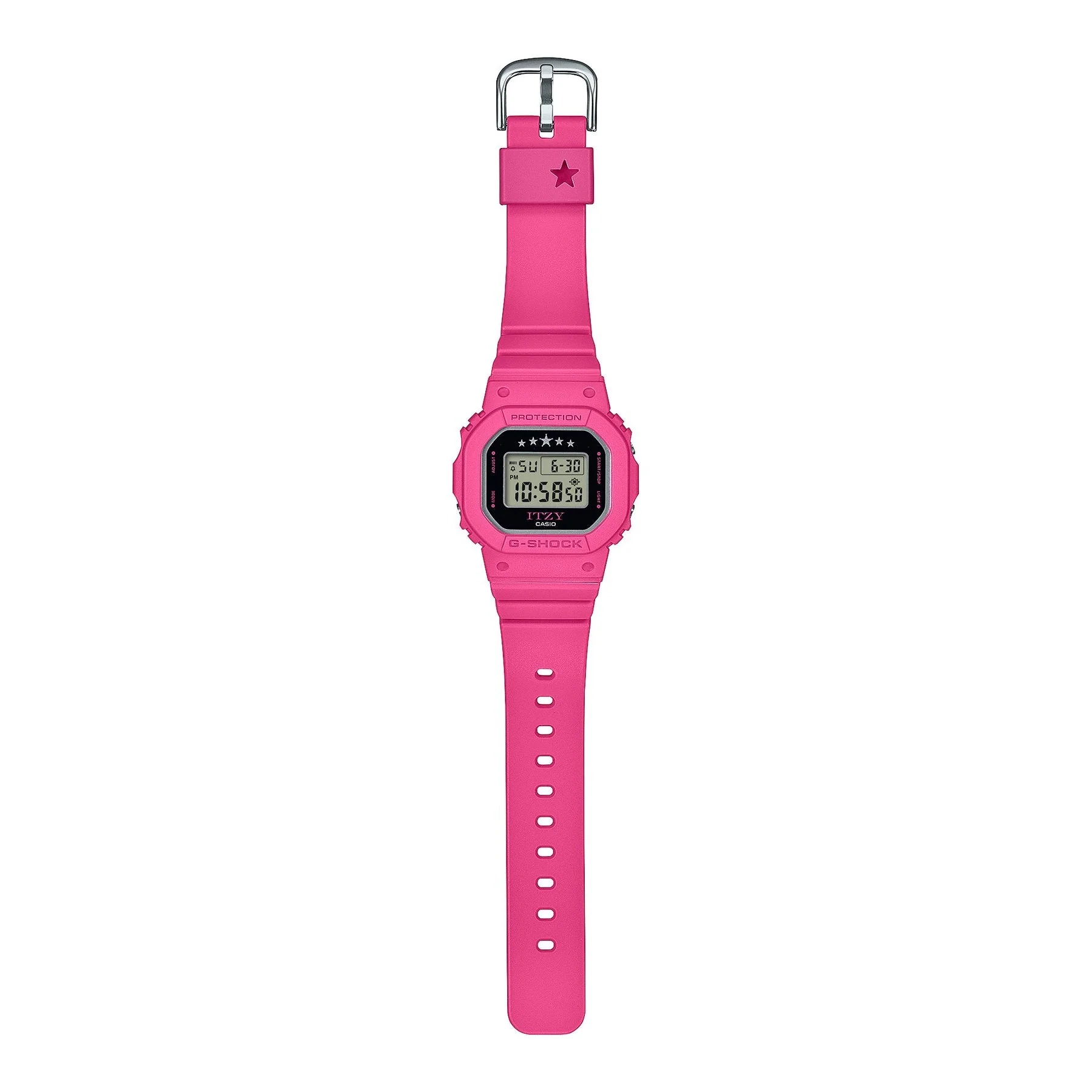 Experience a delightful blend of style and resilience with the G-Shock ITZY Pink Resin Band Watch GMDS5610IT-4A. This exclusive women’s watch, designed in collaboration with the K-pop sensation ITZY, embodies vibrant individuality through its charming pink bio-based resin band and bezel. The unique mirror-finish star pattern pays homage to ITZY’s dynamic presence, while the star-shaped band loop adds a whimsical touch. Built for durability, this watch features water resistance up to 200 meters and exceptional shock resistance, making it perfect for any lifestyle. The digital display ensures clarity, complemented by a reliable quartz movement for precise timekeeping. Elevate your collection with this captivating timepiece that marries artistic flair and practical functionality.