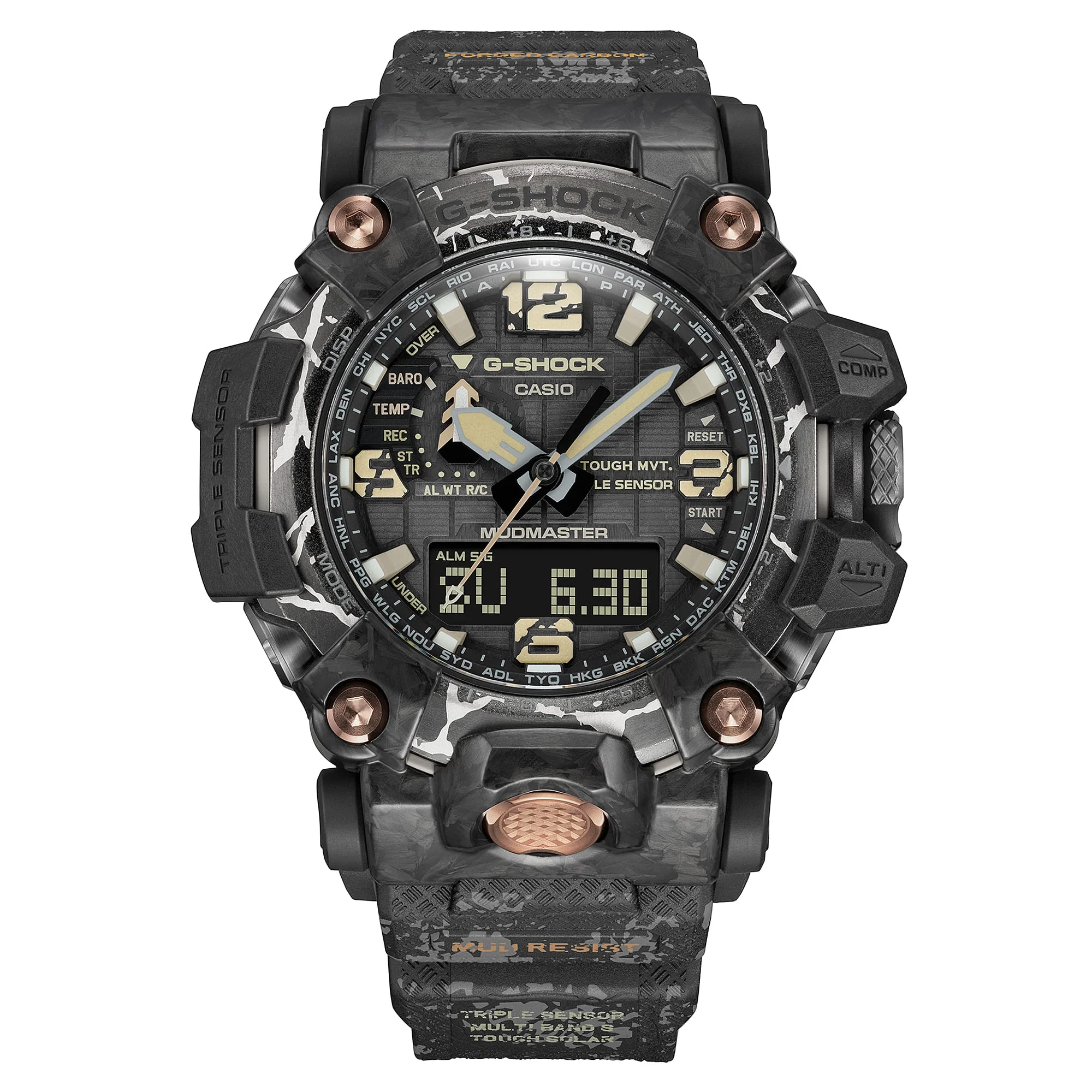 Experience unparalleled durability and style with the G-Shock Mater of G-Land Mudmaster Resin Band Watch. This premium watch features shock resistance and a rugged design, perfect for outdoor adventures. Its sleek resin band adds a touch of luxury to your look, making it the perfect choice for the modern and sophisticated individual.