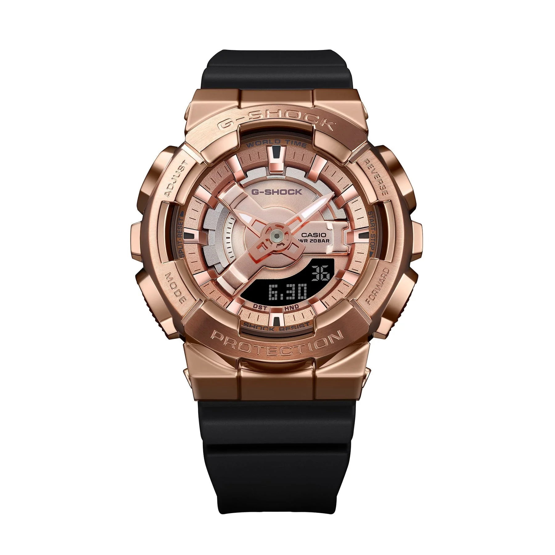 Go metal-clad in total comfort — with the popular GM-110 analog-digital combination G-SHOCK, now in an even slimmer, more compact construction.