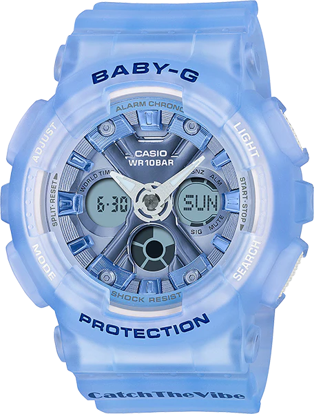 The “Catch The Vibe” message printed on the watchbands embodies the hip-hop culture of the ’90s and early 2000s, bringing back that edgy retro vibe in a truly special timepiece. This BABY-G will get your heart racing and ready for dance mode.