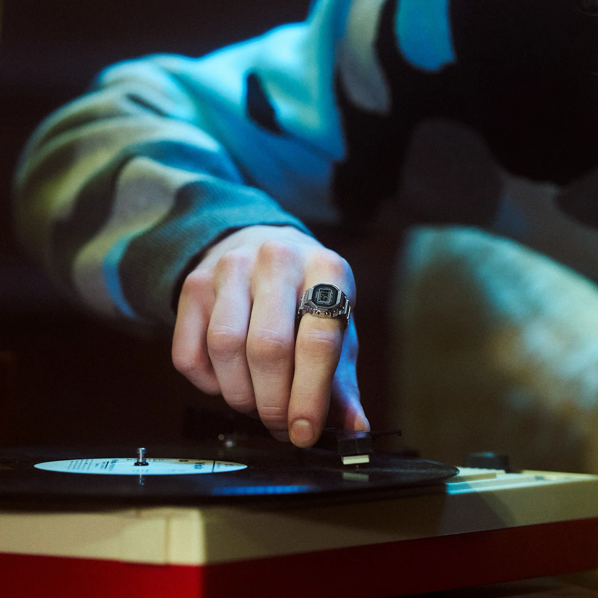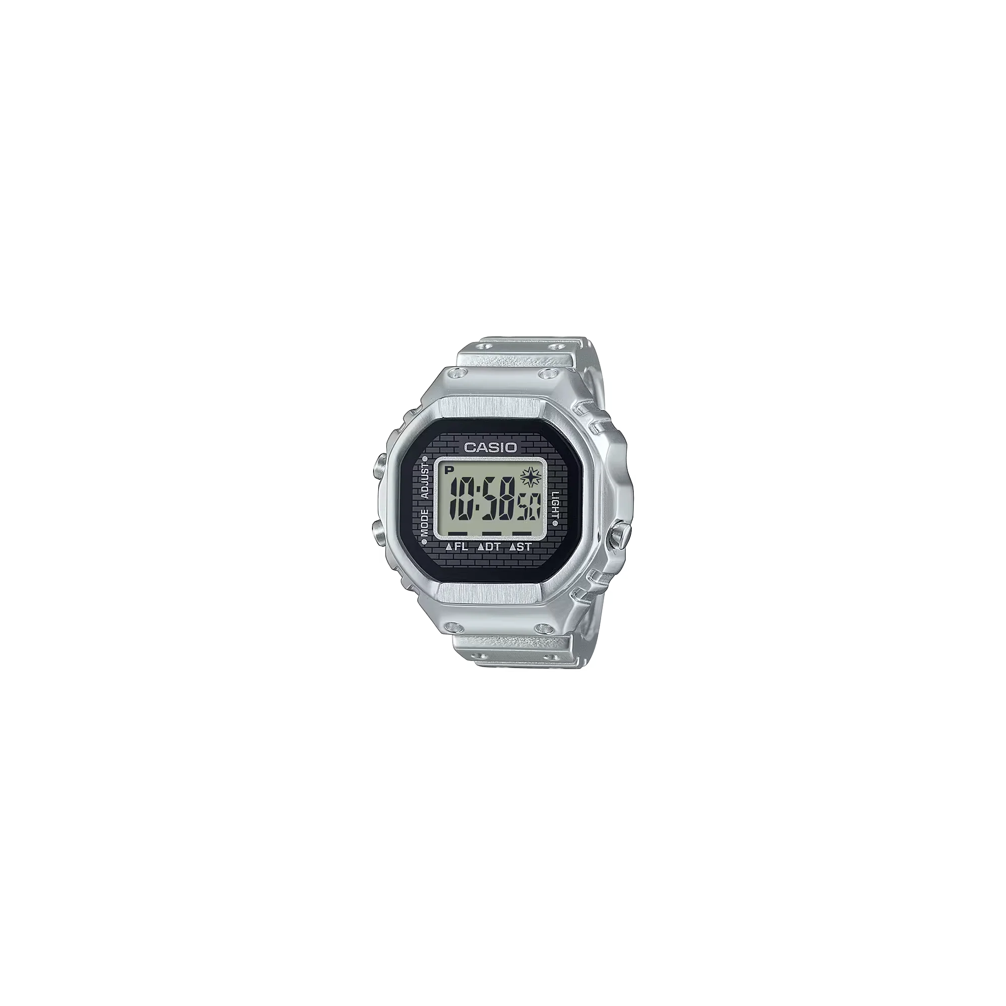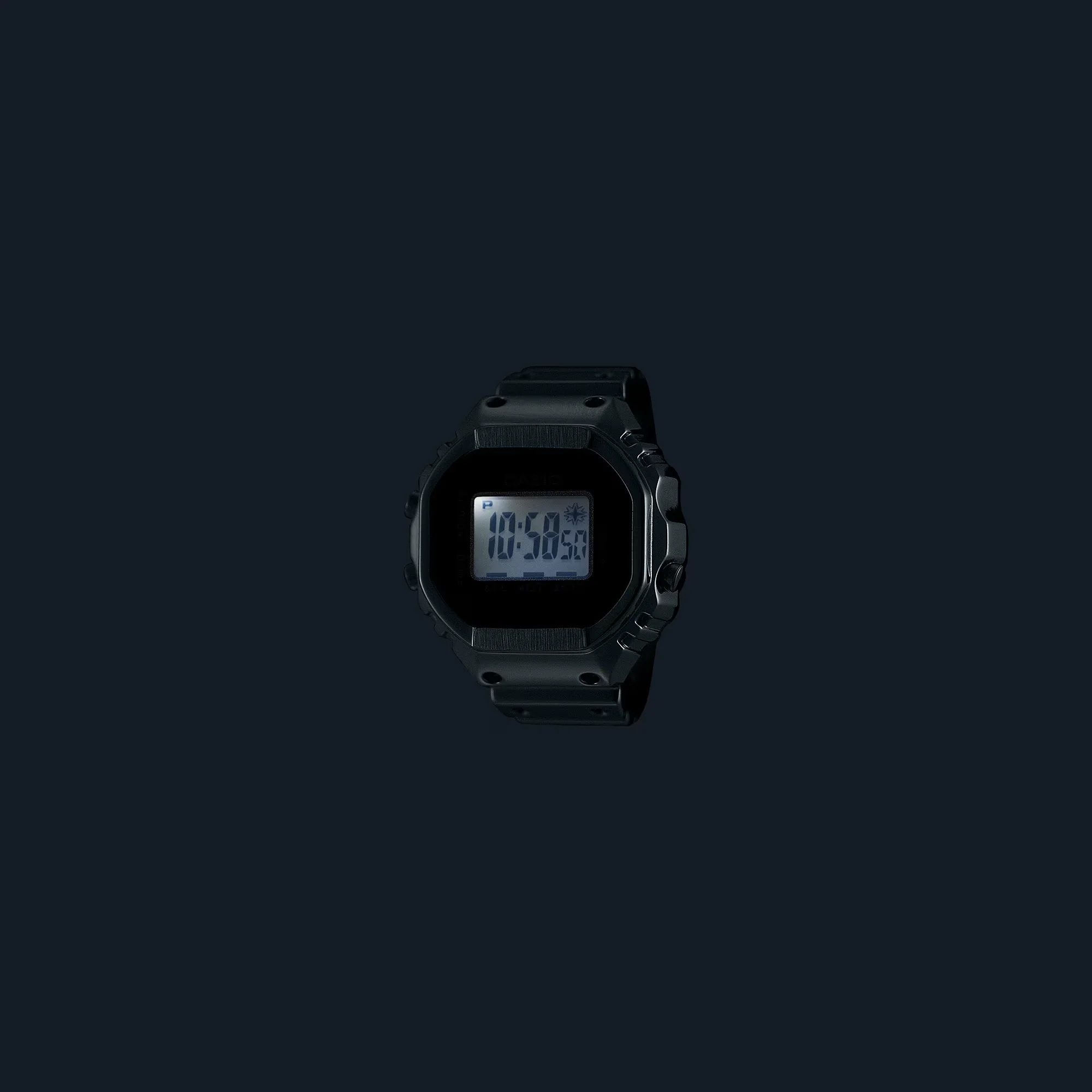 A ring-sized watch of Casio Watches. A whole new style of digital watch — both practical and playful — thanks to a miniature module and advanced metalworking technology. Creating a ring-sized, full-metal version of the Casio watch’s complex form is no easy feat. To make this possible, we needed to use a special method of metal processing to inject a mixture of fine metal powders and resin into a mold. Using metal injection molding (MIM), the case, case back, and ring are molded in one piece, with even the dimpled design on the band faithfully reproduced. A special glass adhesive technique ensures a tight seal for a watch built to be water-resistant while still allowing the battery to be replaced. With an inner diameter of 20 mm and a circumference of 62.8 mm, the ring fits a size 22 finger (US 10.5, EU U) and includes two size-adjusting spacers, in size 19 (19-mm inner diameter) and 16 (18-mm inner diameter). We downsized the standard watch module by a factor of 10 and combined it with a small button battery to create a 3-button digital watch that fits on your finger. Even at this small size, the watch features a 7-segment LCD that displays not only the time down to the second, but also the date, dual time, and stopwatch functionality. Preset the time of your choice, and the ring watch gives off a subtle, flashing light — not only handy for keeping time, but also a poetic nod to the fleeting twinkle of time.