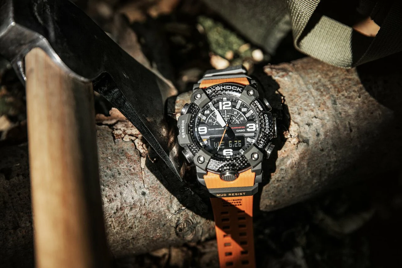 Discover the G-Shock Orange Master Of G Mudmaster Watch GGB100-1A9, a pinnacle of craftsmanship designed for outdoor enthusiasts. This men’s watch features a robust carbon resin structure that withstands the harshest conditions. Equipped with advanced Quad Sensor capabilities, it measures compass direction, altitude, temperature, and step count, making it an essential companion for adventurers. The durable 55mm case is complemented by a resilient rubber band, ensuring comfort and longevity. With a water resistance of 200 meters and a striking black dial, this watch balances functionality and style effortlessly. The interactive G-SHOCK app adds a layer of convenience, allowing you to track your activities and access real-time data. Experience the ultimate blend of durability and sophistication with the GGB100-1A9, crafted for those who conquer the elements.