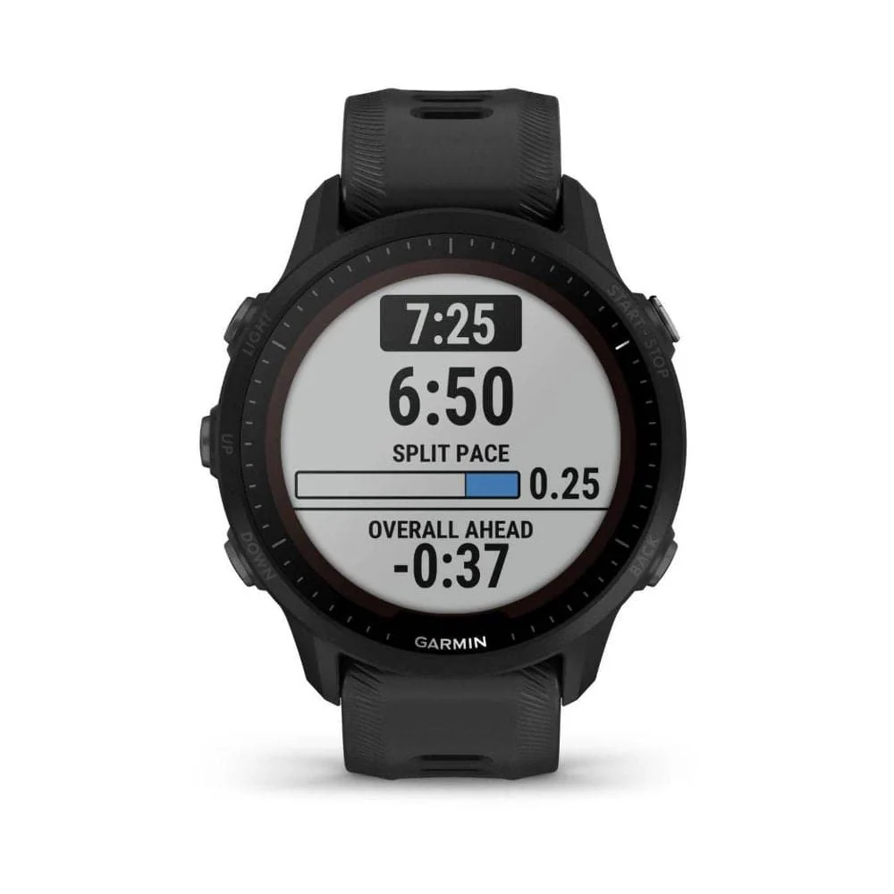 When using a Running Dynamics Pod or HRM-Pro monitor, the Forerunner 955 watch measures crucial running metrics such as cadence, stride length, ground contact time and balance, and more.