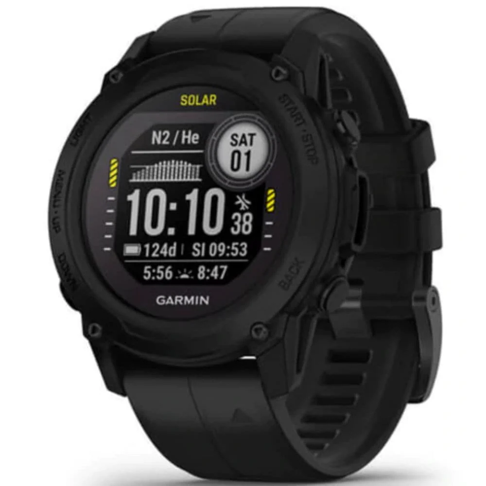 Multisport Dive Computer, Solar Charging, Multiple Dive modes, Surface GPS, Dive Log, Dive Compass, Tide Data, Surfline, Multiple Land sports app, WHRM, Wellness features, Garmin Pay