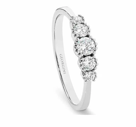 The Mantle Ring is a timeless piece – never going out of style and perfect to wear with any outfit. This ring features five gorgeous, sparkling cubic zirconias, set in Rhodium plated 925 Sterling Silver.