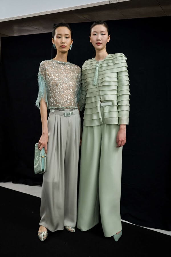 Elevate your wardrobe with this stunning Giorgio Armani pleated jersey twinset, expertly crafted from luxurious jersey fabric. The set includes a sleek top and matching trousers, both featuring intricate pleating details that add a touch of sophistication. The comfortable, stretchy material ensures a flattering fit, while the classic design makes it perfect for dressing up or down. Ideal for formal events, business meetings, or a stylish night out, this twinset exudes elegance and refinement. The high-quality construction and attention to detail reflect Giorgio Armani’s commitment to excellence. Pair with your favourite accessories to complete the look. Made from premium jersey fabric, this twinset offers a comfortable, fluid silhouette. The pleated design creates a slimming effect, while the neutral colour palette ensures versatility. A timeless addition to any wardrobe, this Giorgio Armani twinset embodies the perfect blend of style, comfort, and sophistication, making it a worthwhile investment for the discerning fashion enthusiast.