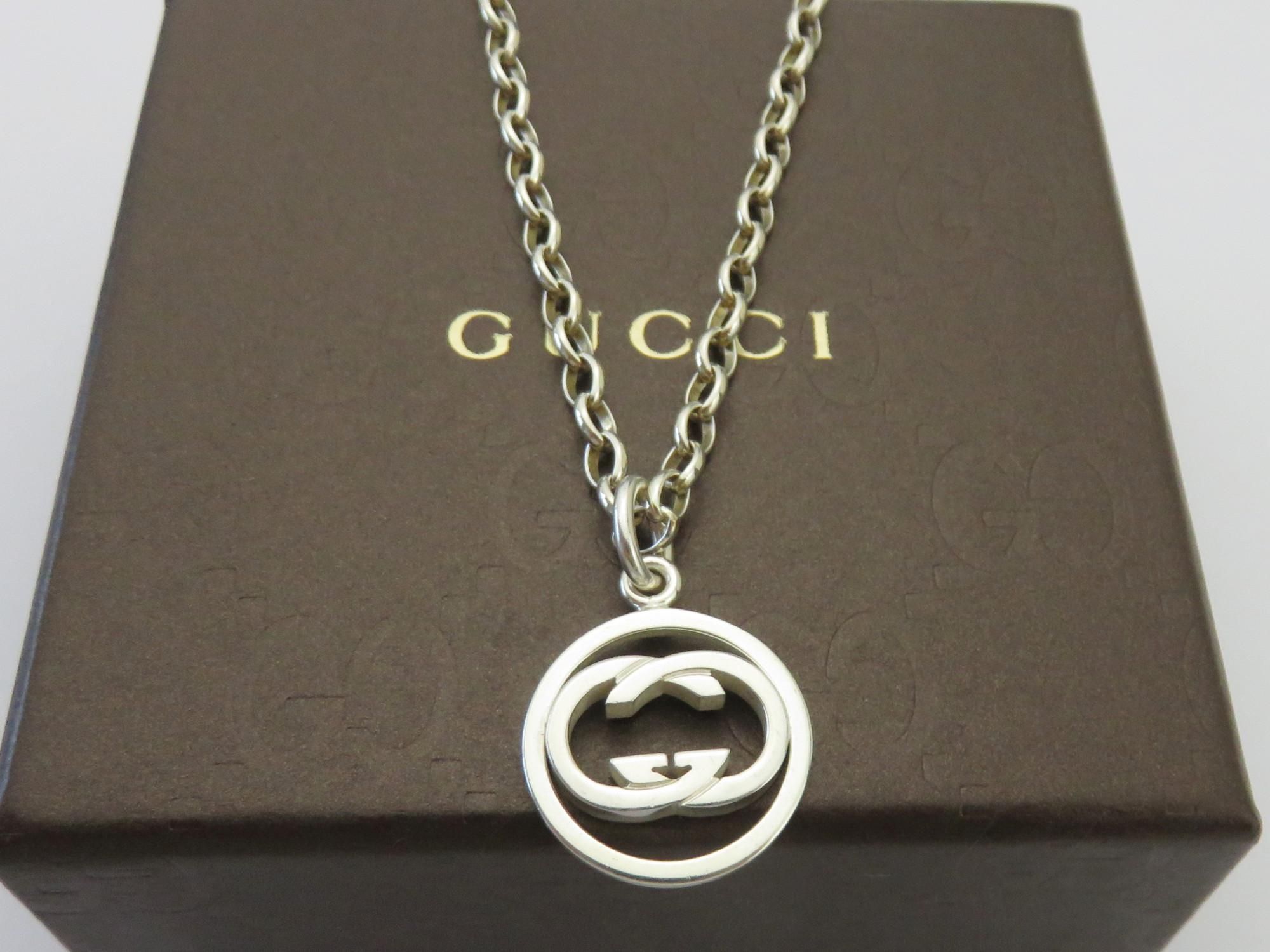 Elevate your style with this stunning Gucci interlocking logo pendant necklace. Crafted from high-quality gold tone metal, this necklace boasts a sleek and sophisticated design that’s perfect for dressing up or adding a touch of luxury to your everyday look. The iconic Gucci interlocking logo pendant is a statement piece that’s sure to turn heads. Measuring generously, this necklace is sure to make a bold fashion statement. With its durable construction and timeless design, this necklace is an excellent addition to any jewellery collection. Whether you’re looking to treat yourself or gift someone special, this Gucci necklace is sure to impress. Pair it with a simple dress or add it to your layered look for a chic, high-end finish. Chain length is adjustable, ensuring a comfortable fit for any occasion, making it a versatile accessory for any wardrobe.