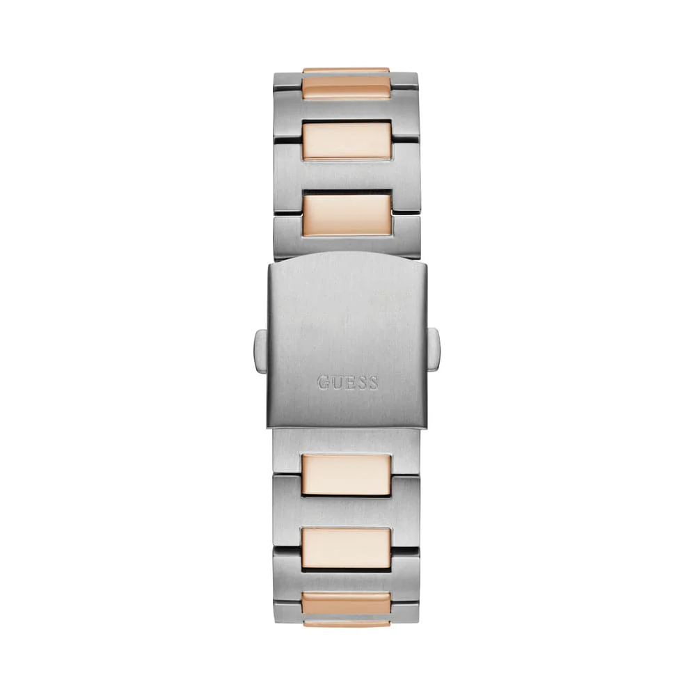 The unisex Guess Headline GW0572G4 watch consists of a bracelet and an envelope made of stainless steel. The model features resistance to major splashes, such as when taking a bath. A quartz mechanism sets the product in motion. The guilloche green dial is complemented by the Day Date and 24h time sub-dials.