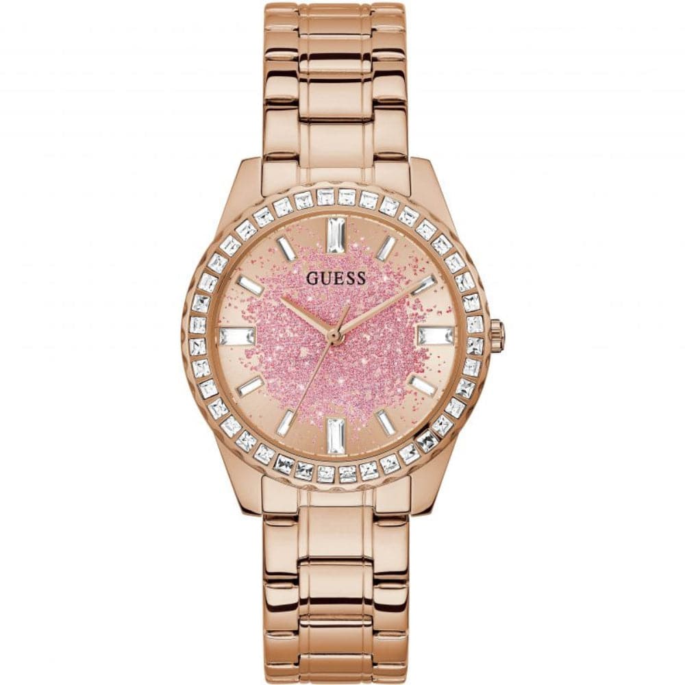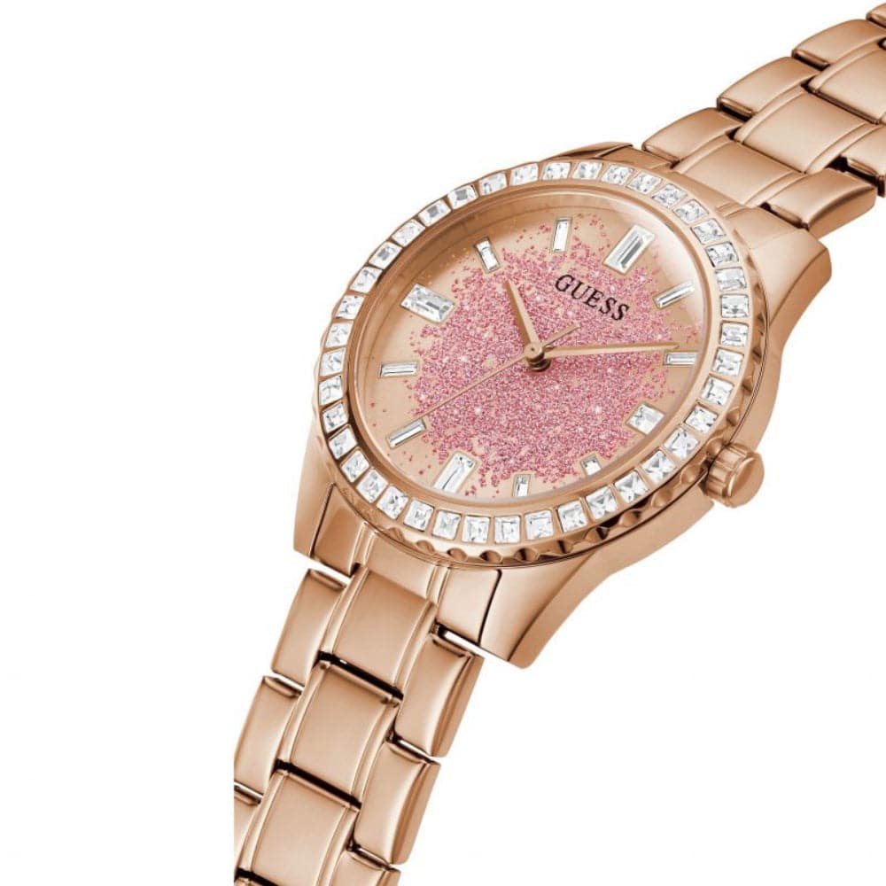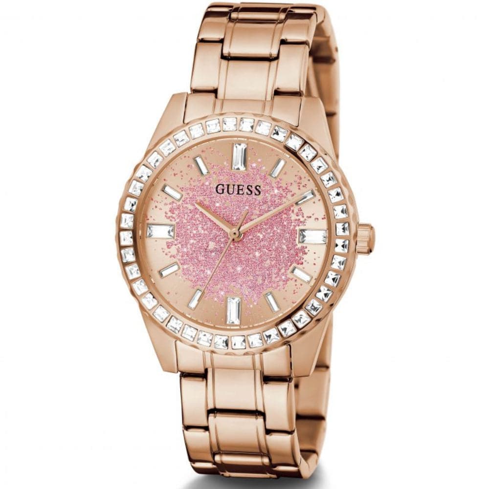 Guess GLITTER BURST GW0405L3 is an incredible eye-catching Ladies watch from NIGHT LIFE collection. Case material is Stainless Steel, which stands for a high quality of the item while the dial color is Rose. 30 meters water resistance will protect the watch and allows it to be worn in scenarios where it is likely to be splashed but not immersed in water. It can be worn while washing your hands and will be fine in rain.