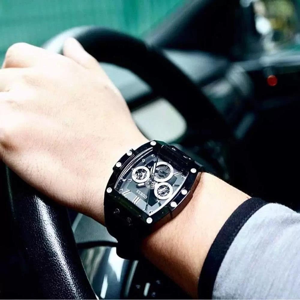 Skeleton dial details keep this phoenix on the rise. Featuring a black barrel shaped case with matching multi-function dial, this pairs perfectly with a smooth black silicone strap.