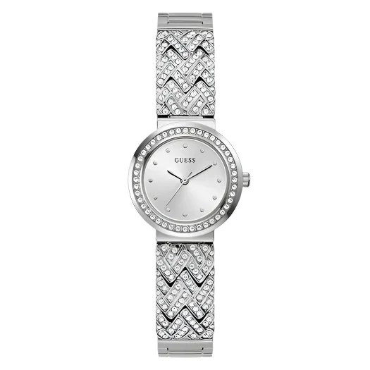 Crafted with durable stainless steel and protected by mineral crystal glass, this timepiece offers long-lasting shine and scratch resistance. The jewelry clasp ensures a secure and comfortable fit, while its 30-meter water resistance and reliable quartz movement promise everyday functionality. As part of the premium apparel and accessories category, this women’s watch stands out for its meticulous detailing and iconic Guess styling—making it a perfect addition to any elegant wardrobe.