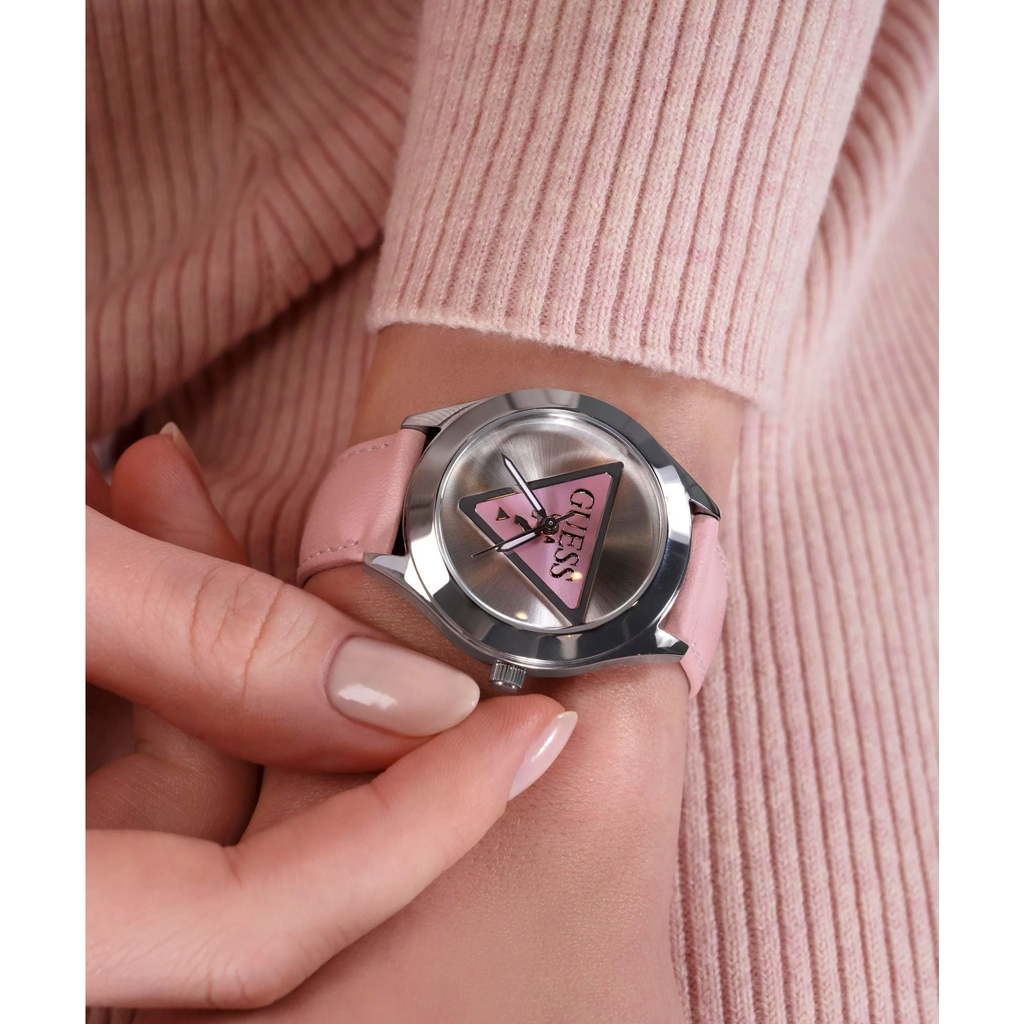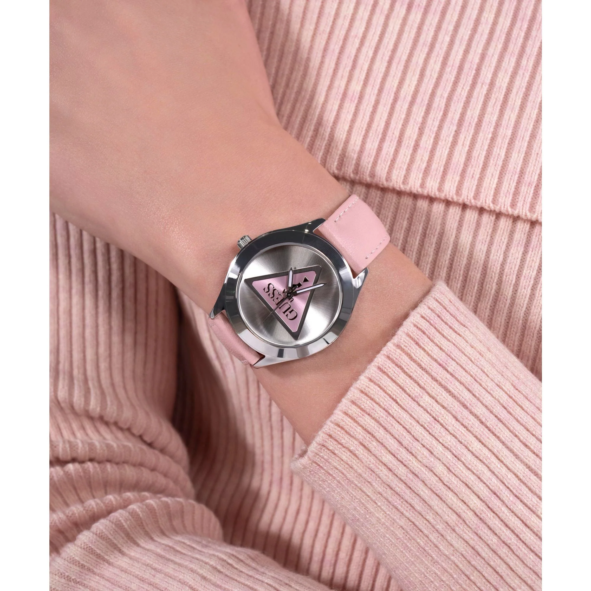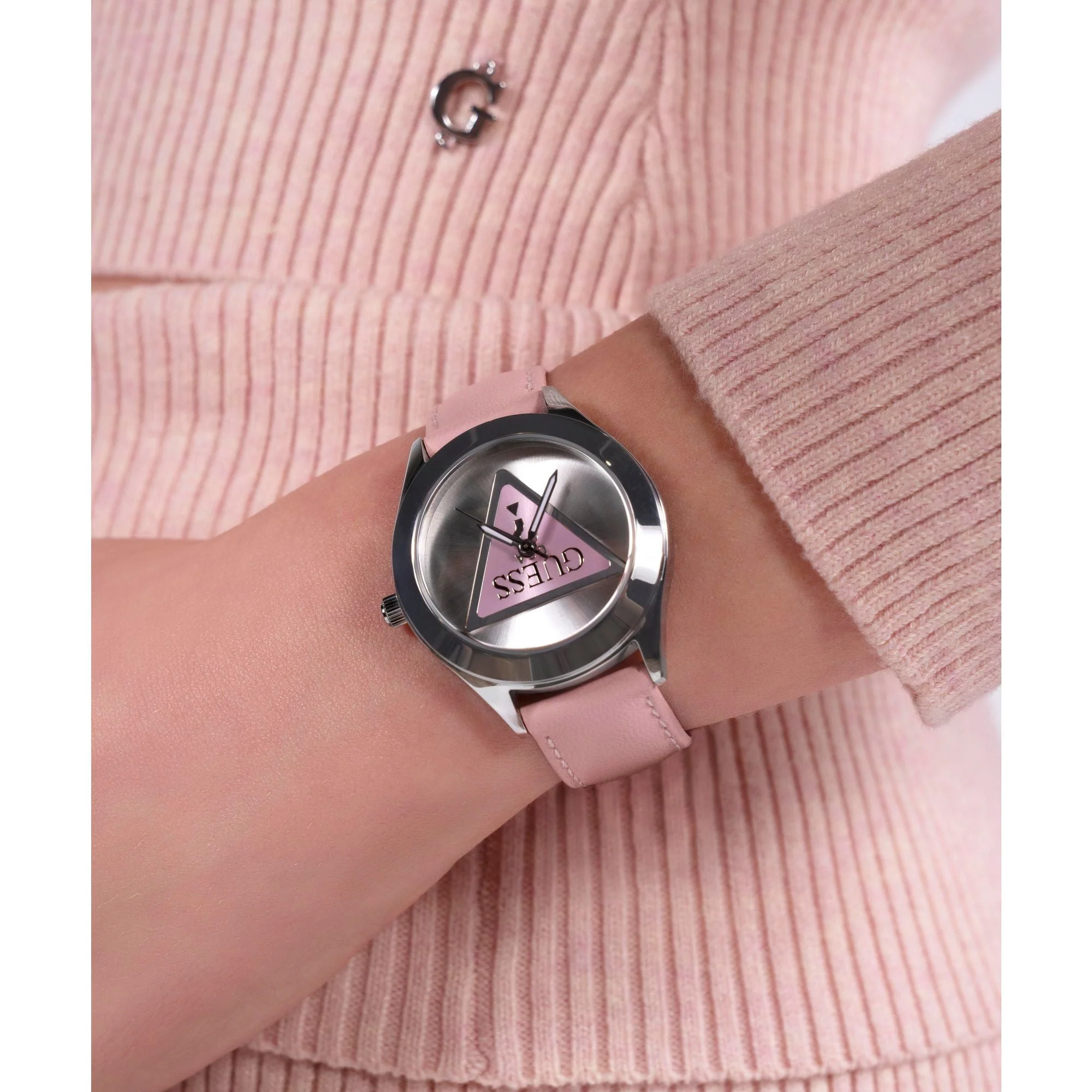 With its unique blend of sophistication and contemporary design, this Guess watch is more than just a timepiece—it’s a fashion statement. The iconic Guess triangle pays homage to the brand’s heritage, while the delicate pink accents introduce a fresh and youthful energy. Whether you’re gifting it to a loved one or indulging in a stylish addition to your own collection, this watch is a must-have for those who appreciate refined elegance with a modern edge.