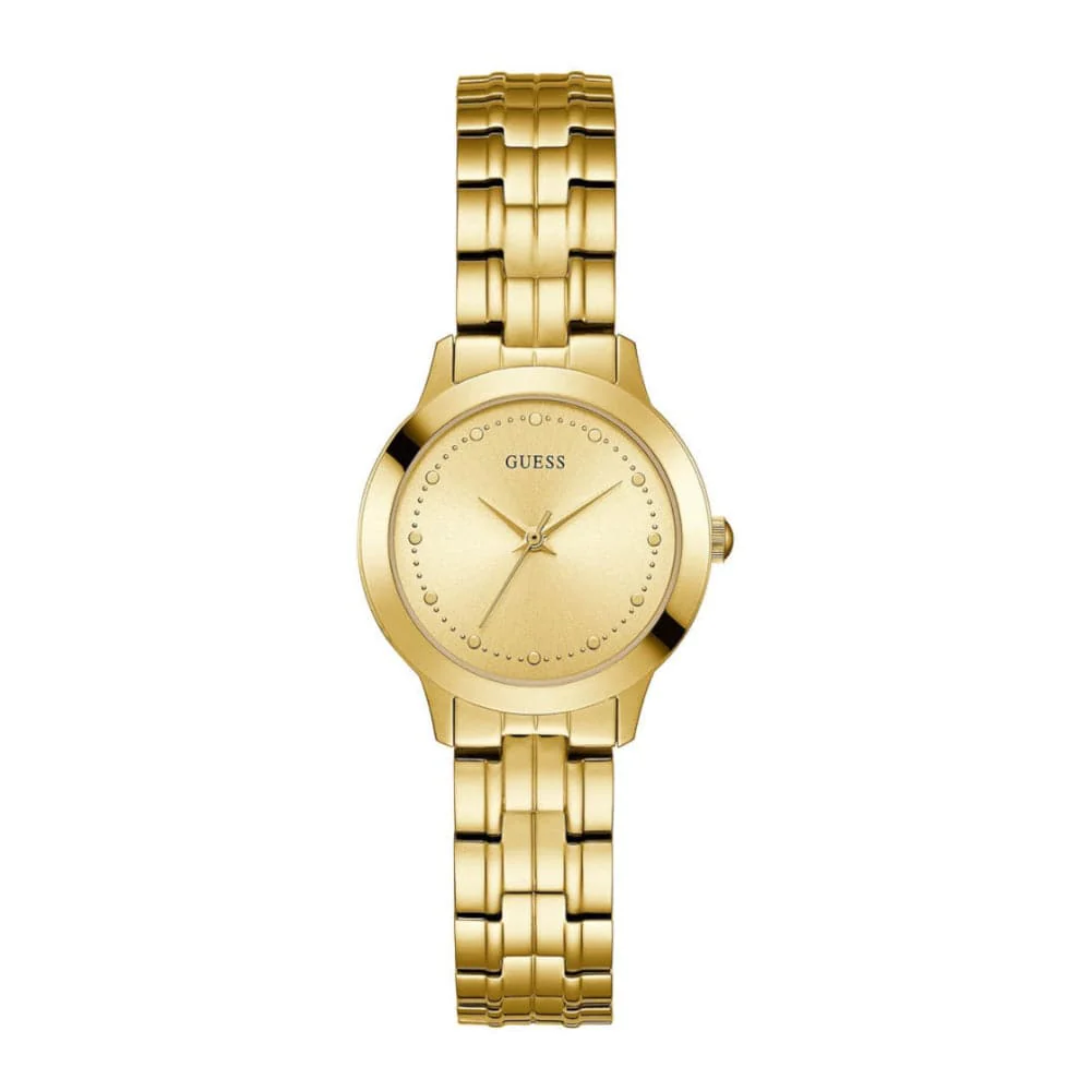 Guess Chelsea W0989L2 is a beautiful and attractive Ladies watch from Ladies Dress collection. Case is made out of Stainless Steel, which stands for a high quality of the item and the Champagne dial gives the watch that unique look. 30 meters water resistance will protect the watch and allows it to be worn in scenarios where it is likely to be splashed but not immersed in water. It can be worn while washing your hands and will be fine in rain. We ship it with an original box and a guarantee from the manufacturer.