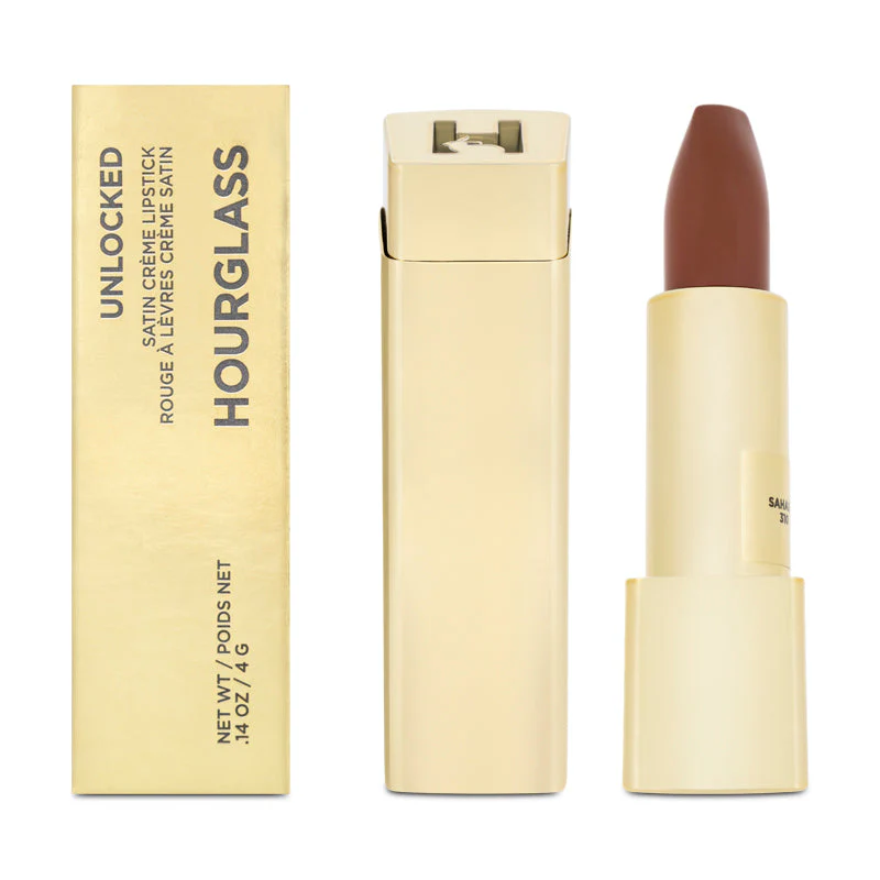 Experience luxurious lip colour with the Hourglass Unlocked Satin Creme Lipstick 310 Sahara. Delivering high-impact warm sienna brown in a single swipe, this lipstick provides a rich, satin crème finish that ensures both beauty and hydration. The creamy, weightless formula glides on seamlessly, melting into your lips for comfortable, all-day wear.