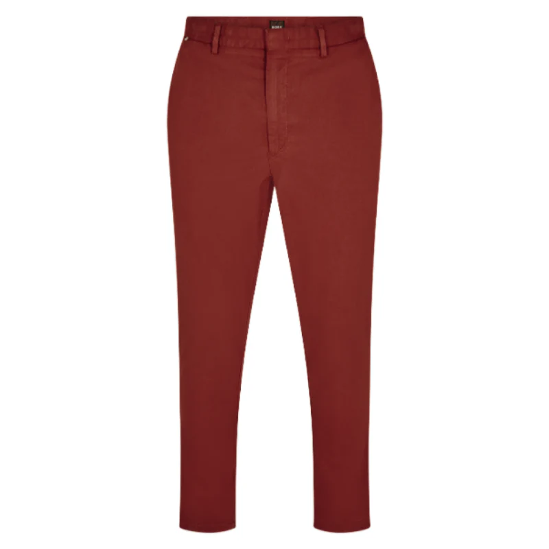 Revitalise your smart-casual wardrobe with the Hugo Boss Kaito Men’s Trousers. Available in a striking dark red, these slim-fit trousers in size 54 embody impeccable style and modern sophistication. Crafted from a lightweight cotton blend, they offer a luxurious touch against the skin and a hint of stretch for exceptional comfort and unrestricted movement all day long.