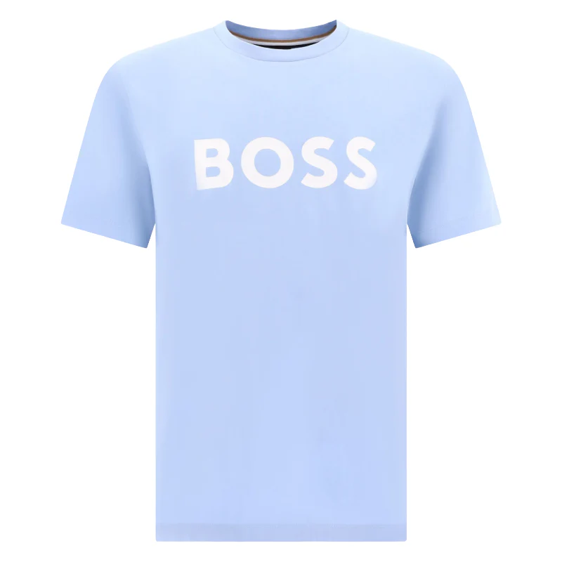 Refresh your wardrobe essentials with the BOSS Menswear Tiburt 354 T-Shirt in a refined light/pastel blue shade. Crafted for comfort, this T-shirt embodies effortless style with its breathable soft cotton material.