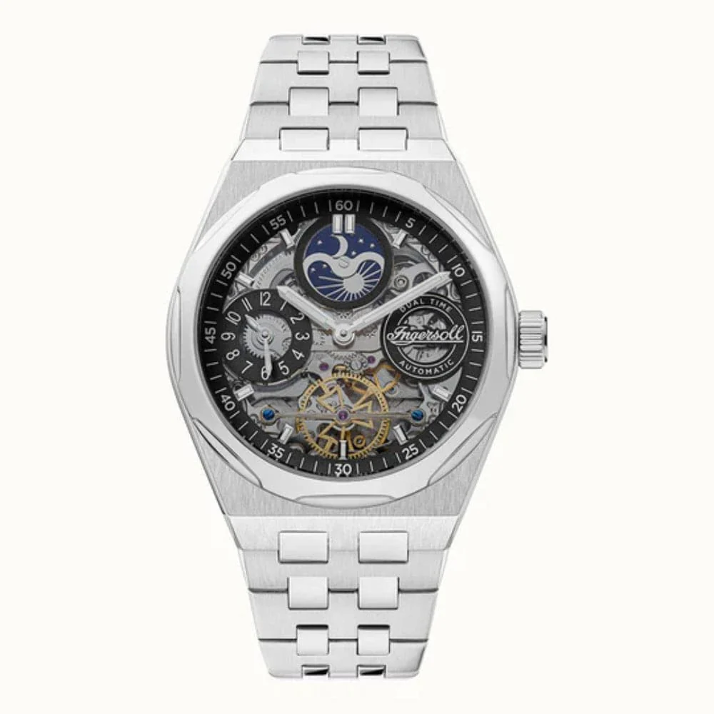 Ingersoll 1892 The Broadway Dual Time Automatic Men’s Watch with Black Dial and Stainless Steel Bracelet – I12901