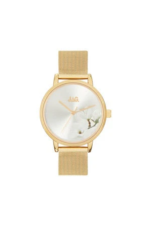 Jag Mia White Floral Stainless Steel Womens Watch