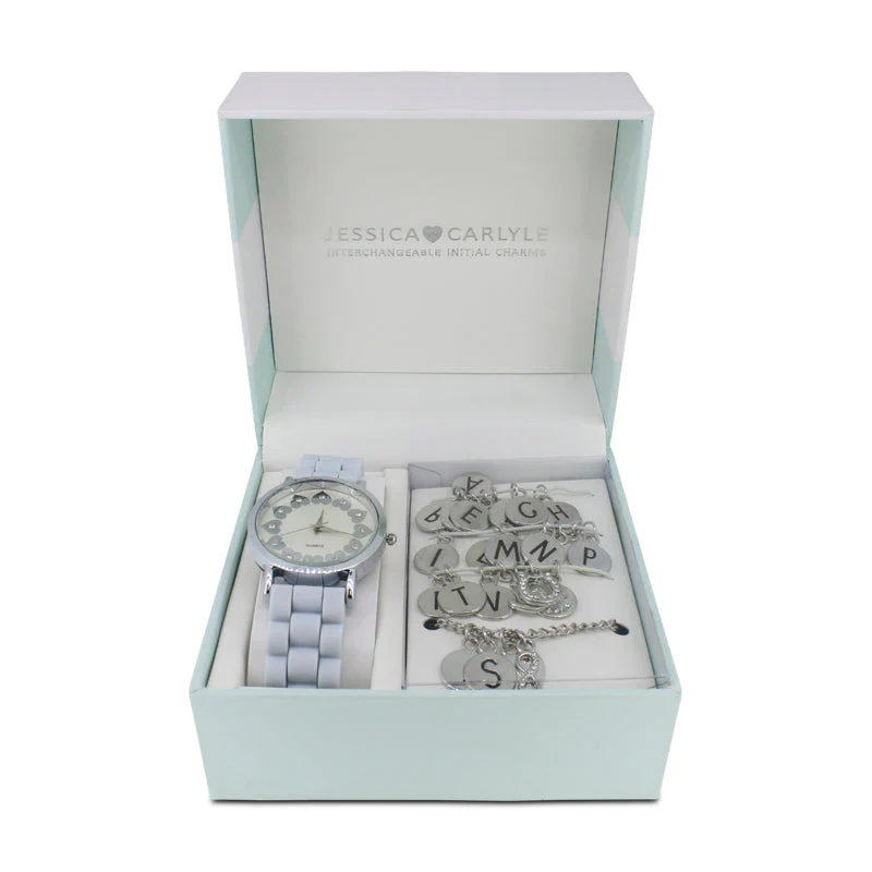 Jessica Carlyle Silver Watch & Bracelet with Charm Set