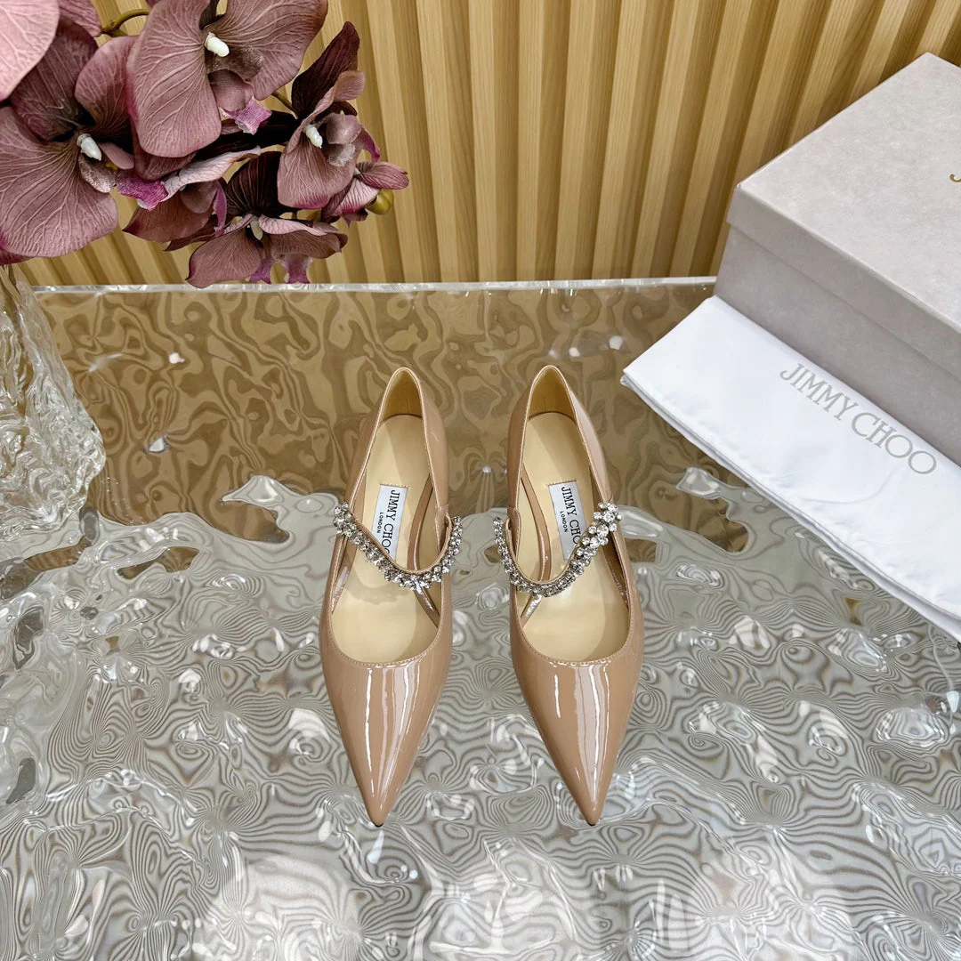 Jimmy Crystal-Strap Ballerina Shoes In Dark Beige Glossy Cowhide 641046