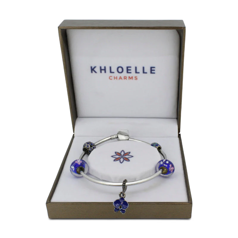 Add a charm to your everyday accessory collection wearing this Khloelle Blue, Pink and White Flower Bangle. It features a secure and adjustable closure.