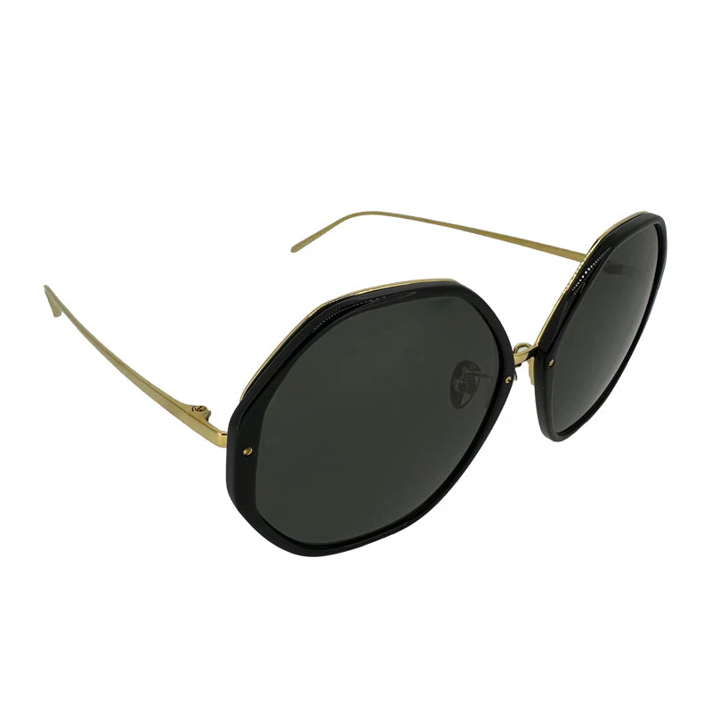 18-22 carat gold-plated women’s hexagonal sunglasses from Linda Farrow. Titanium frame and adjustable nose pads for comfort.