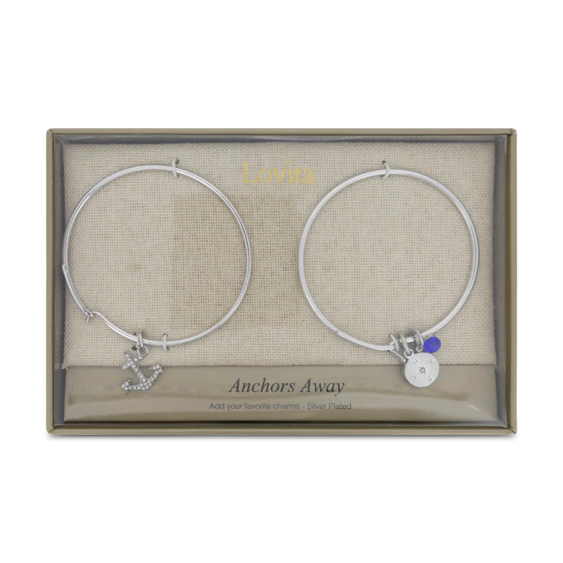 The Lovita Silver Charm Bangle Anchors Away 2 Piece Jewellery Set features a nautical design with silver charms.