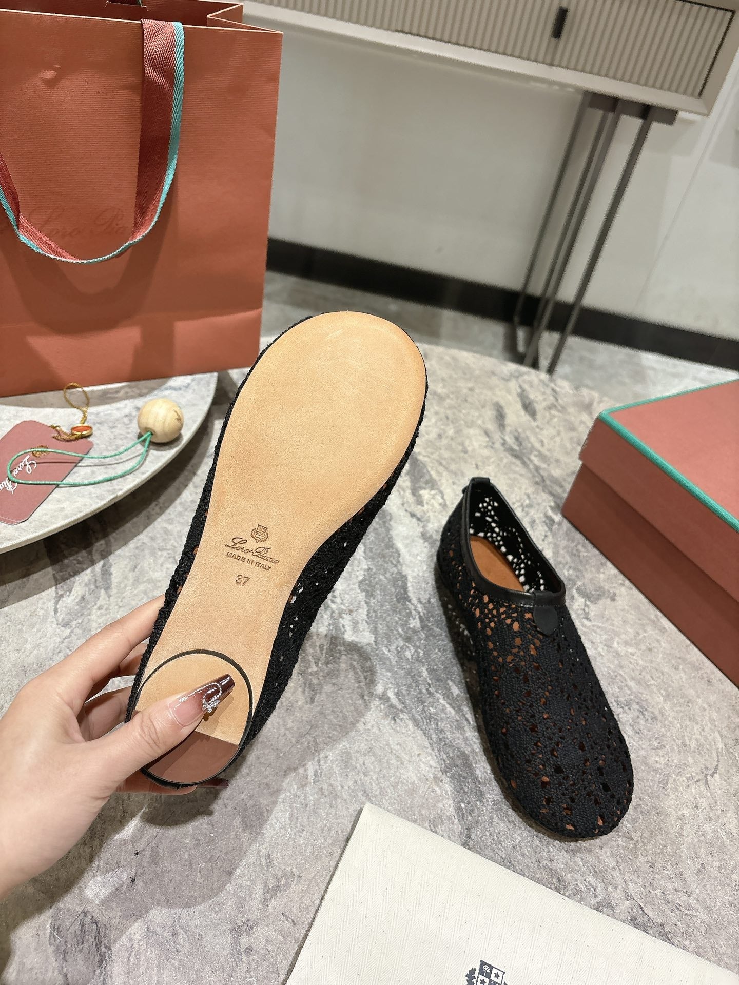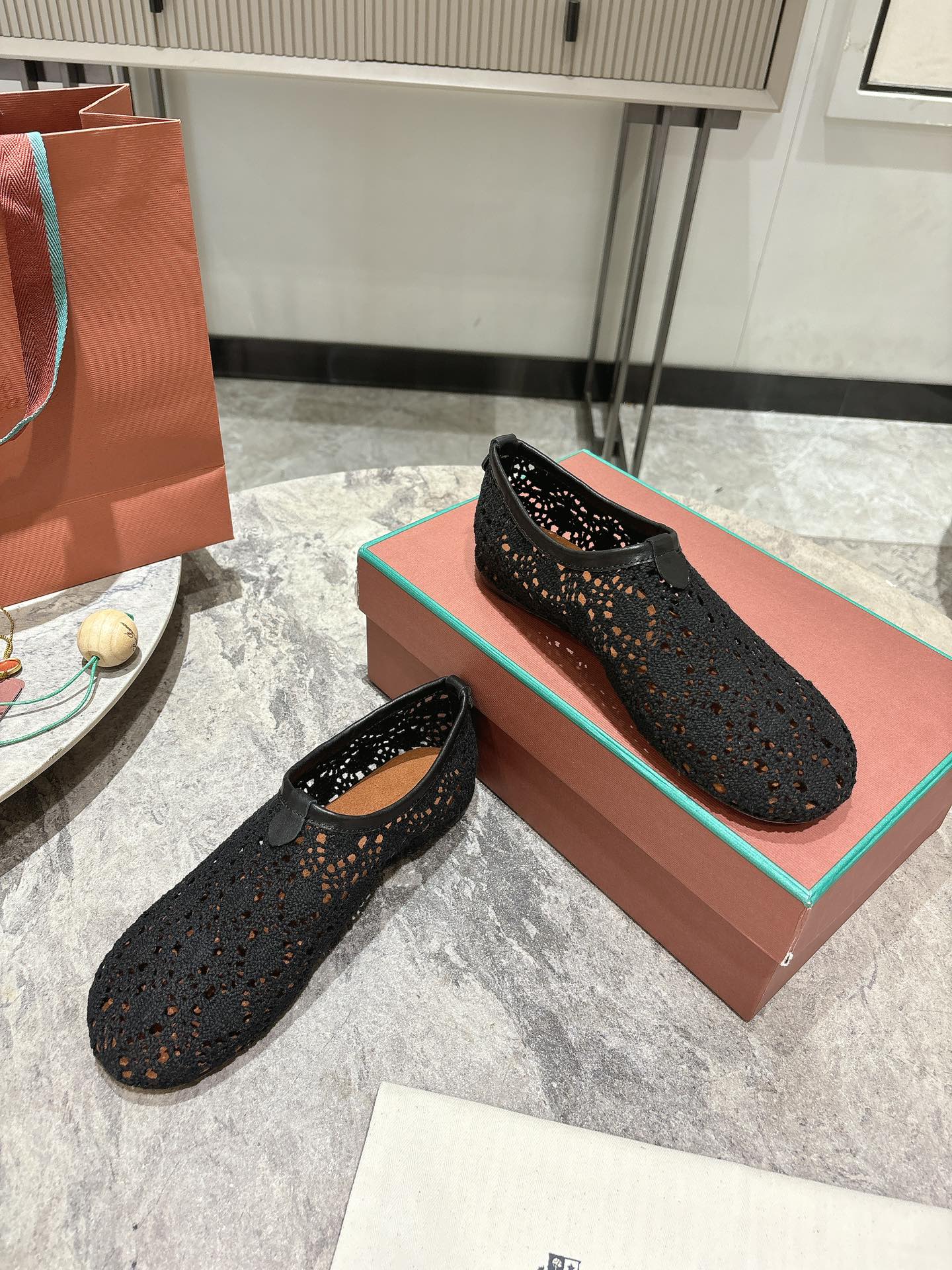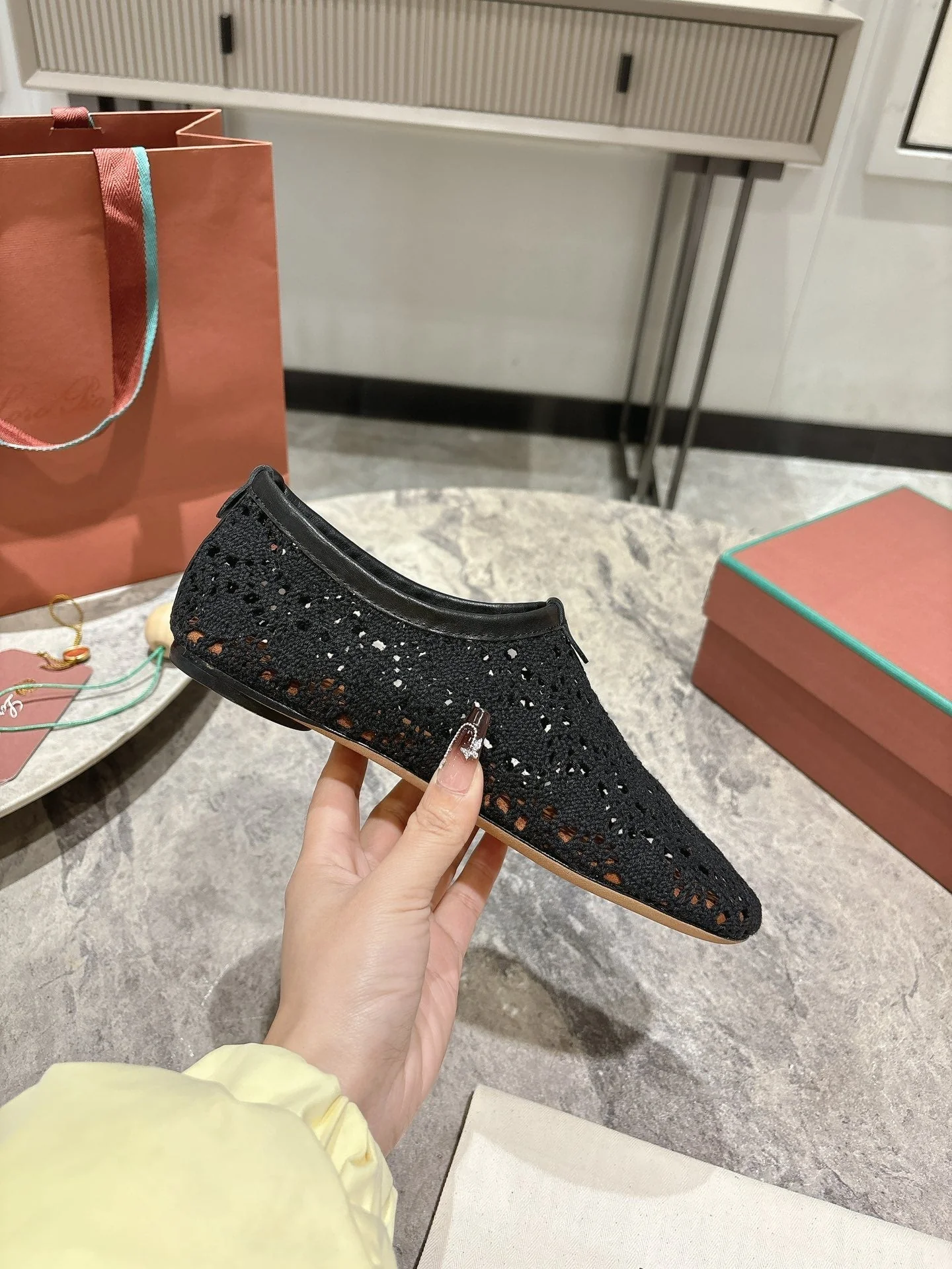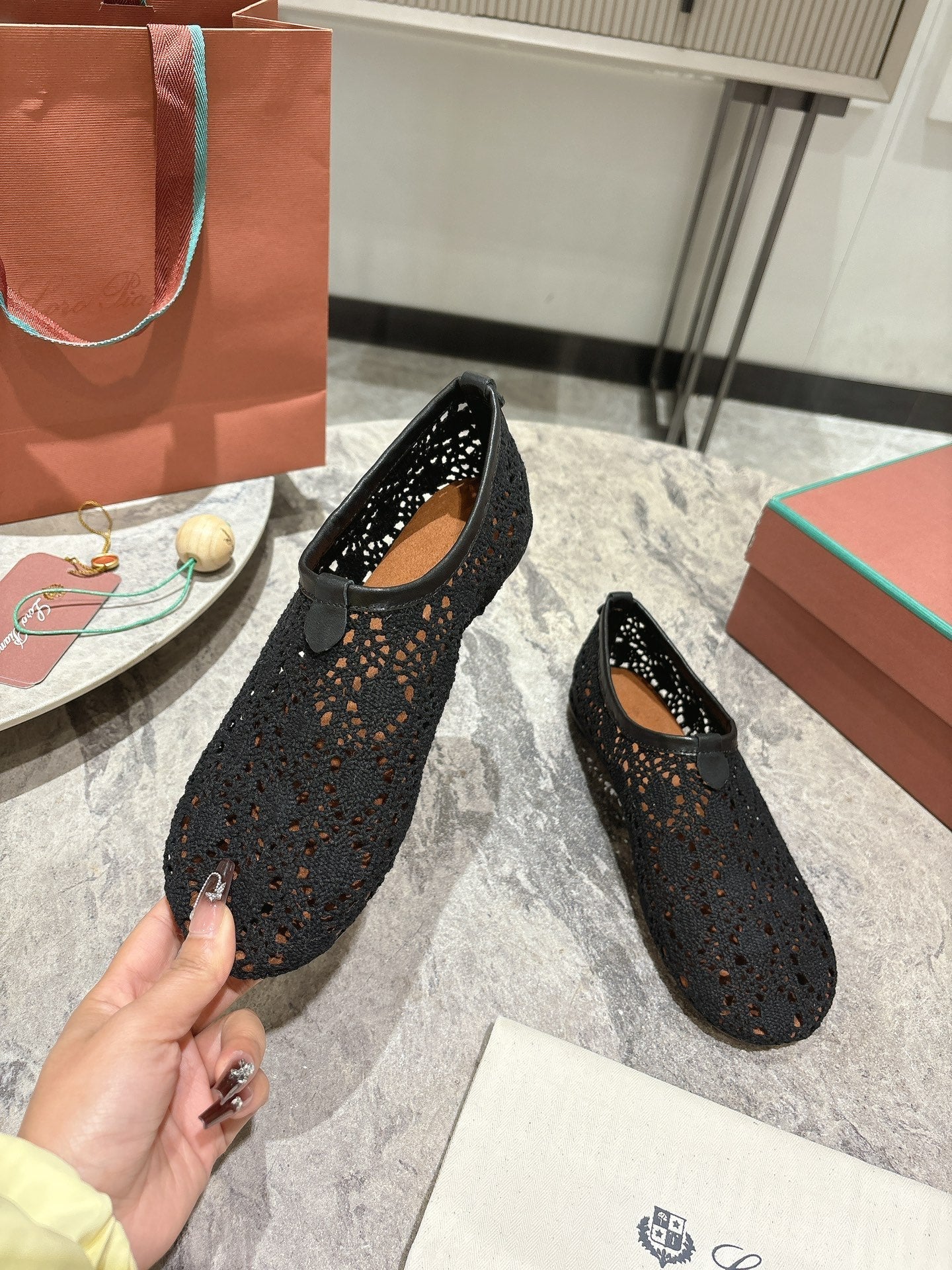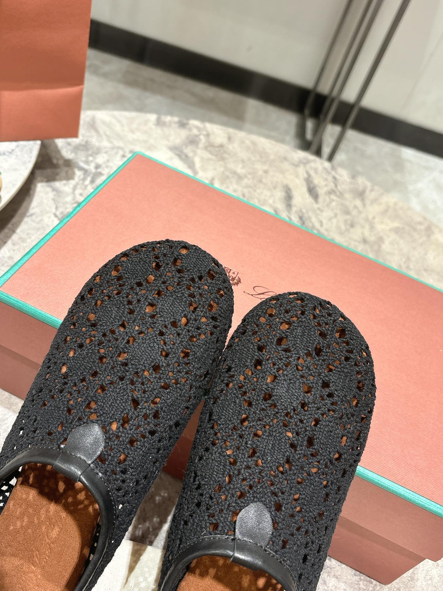 LP hollow knit ballet flats black fabric 379027