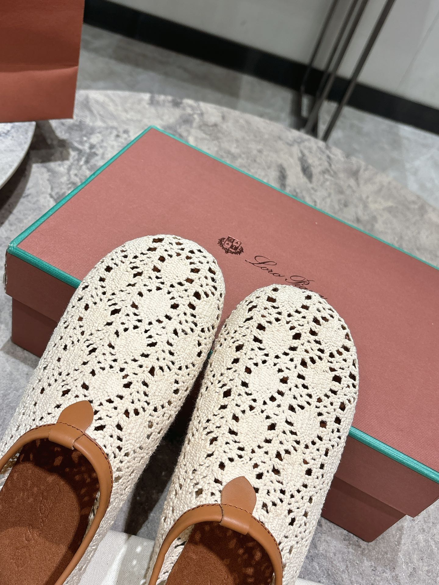 LP hollow knit ballet flats white fabric 379026