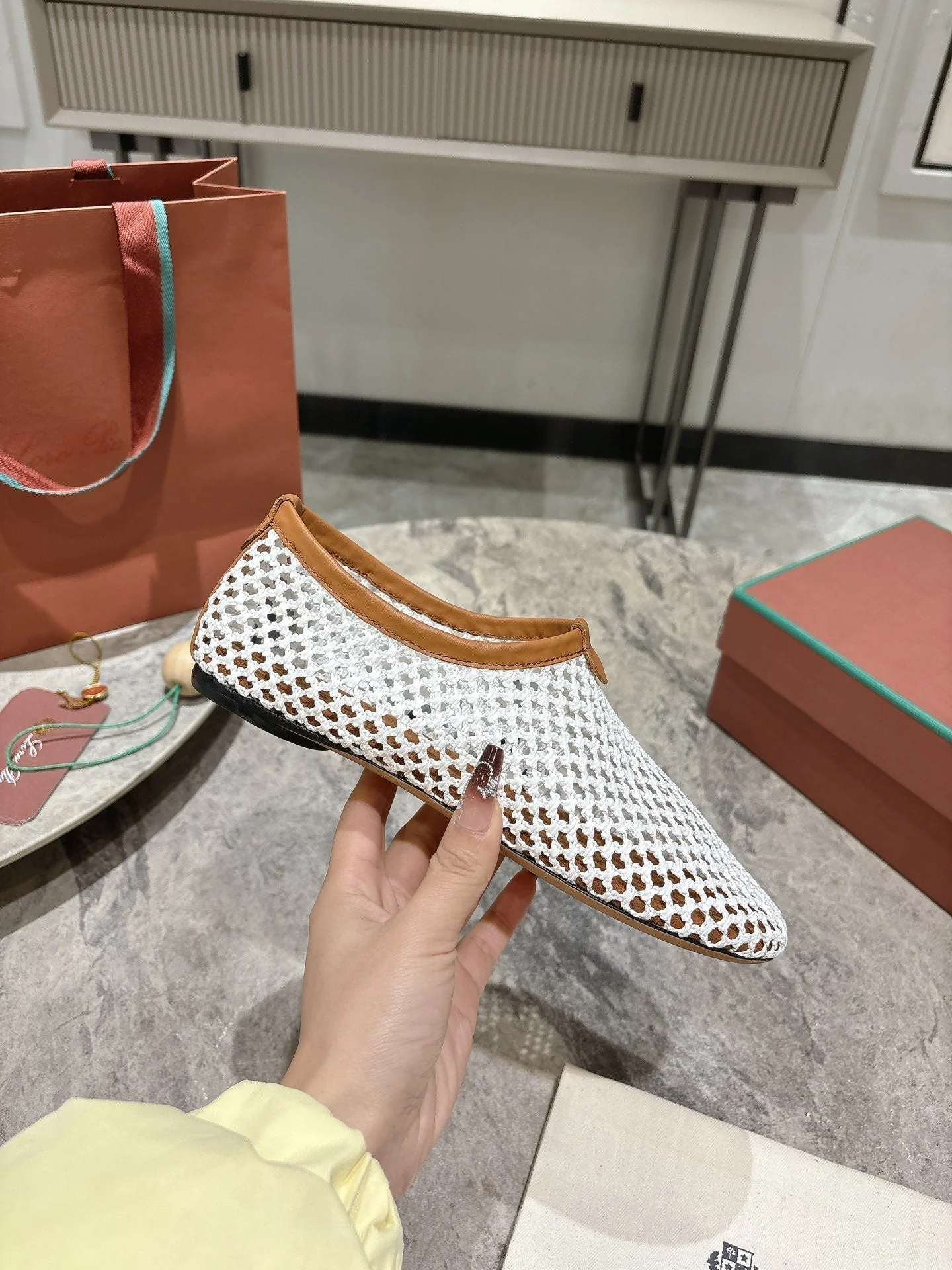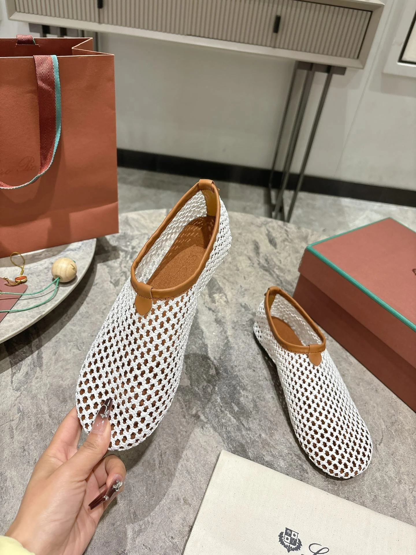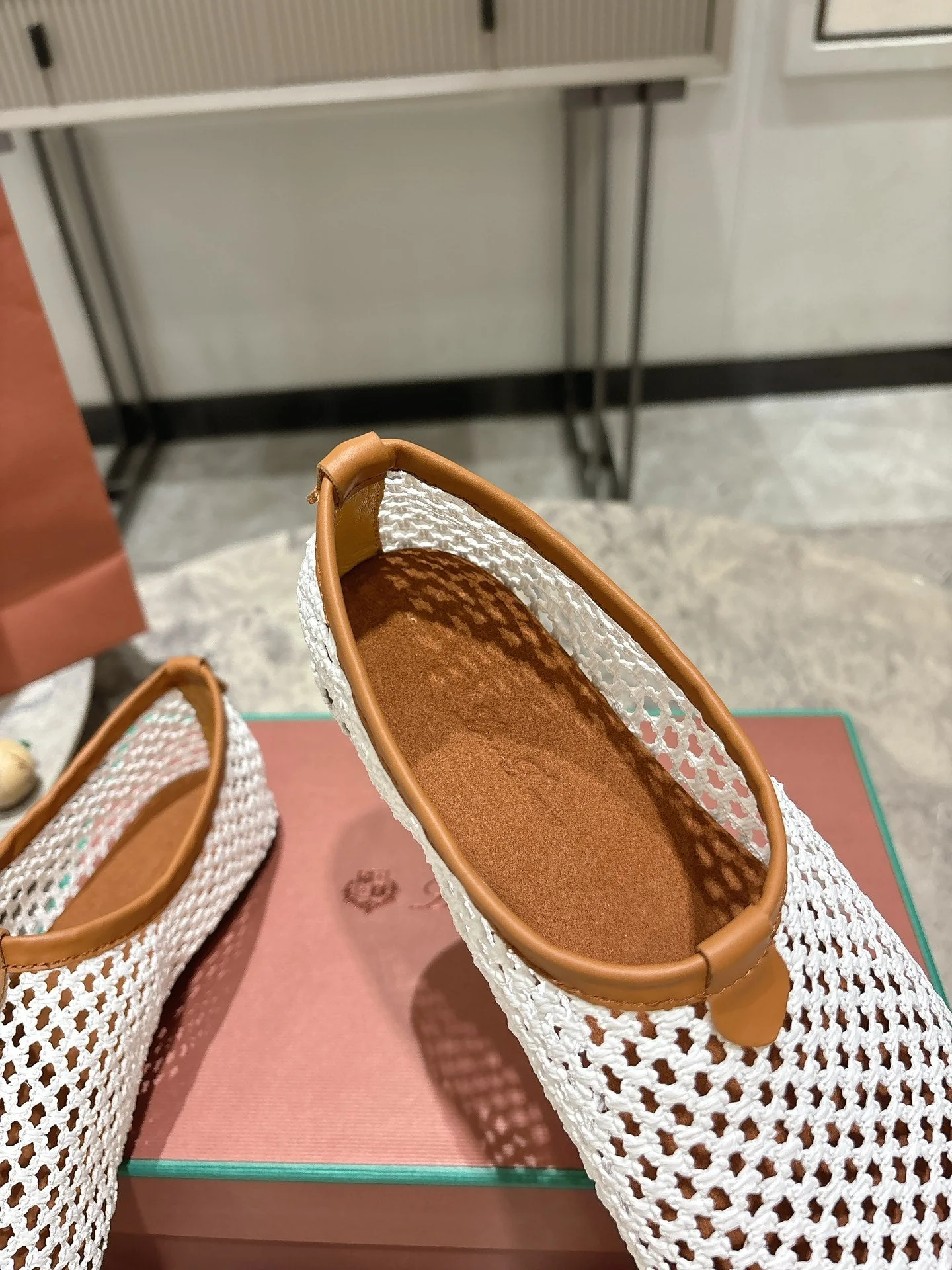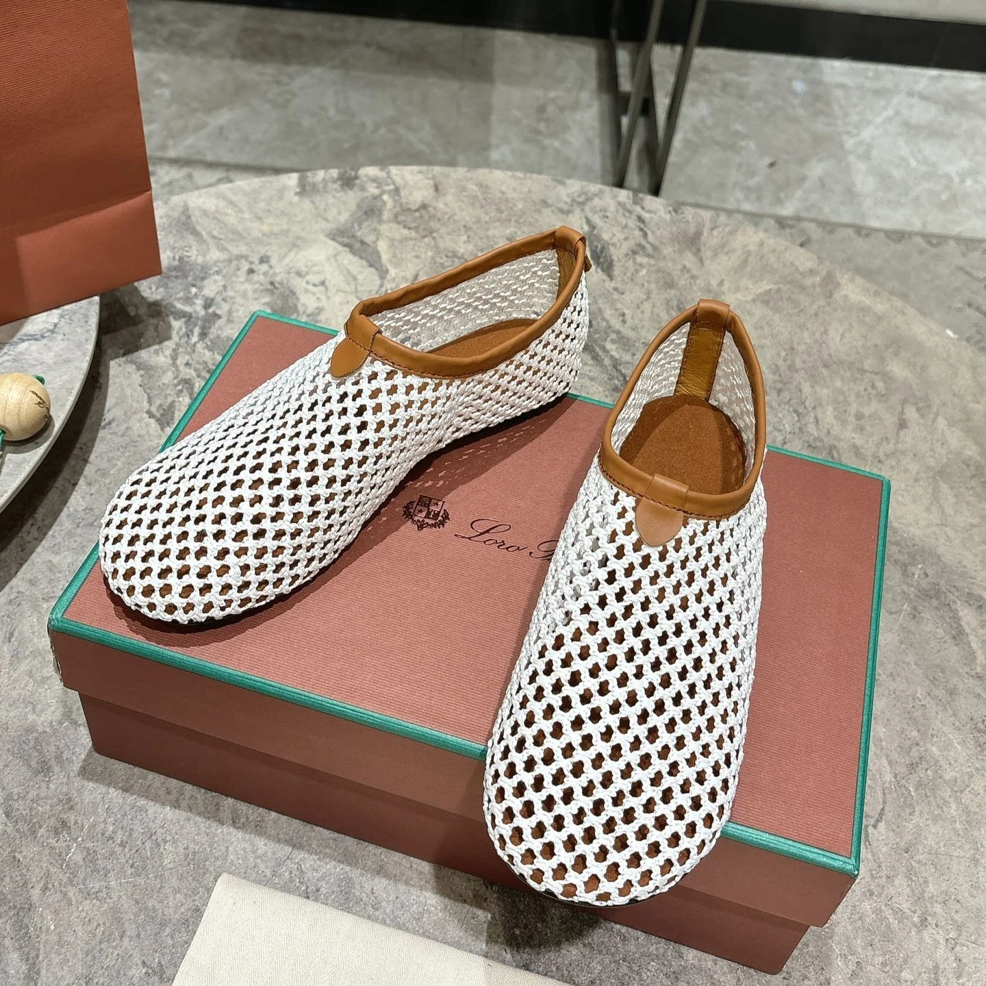 LP hollow knit ballet flats white original leather 379025